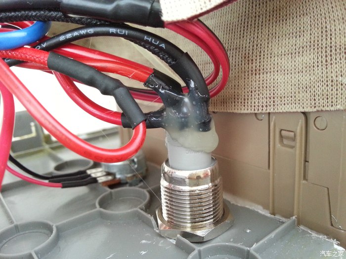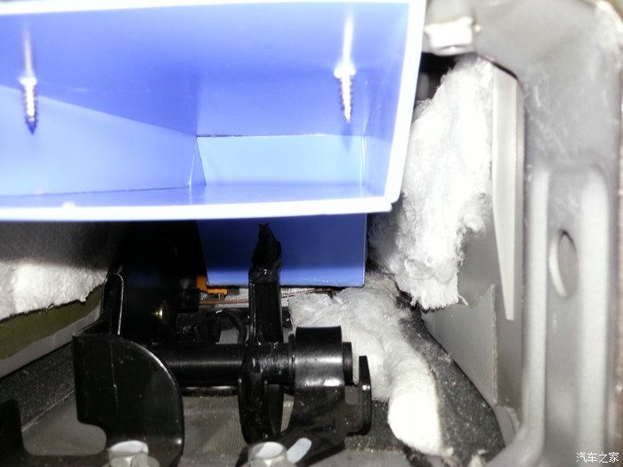 图片一多就容易乱,这是管子从扶手箱内部穿出来的样子。