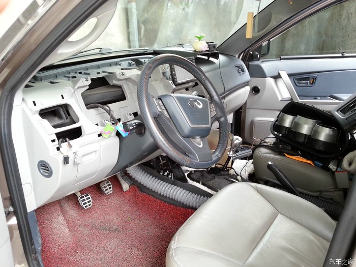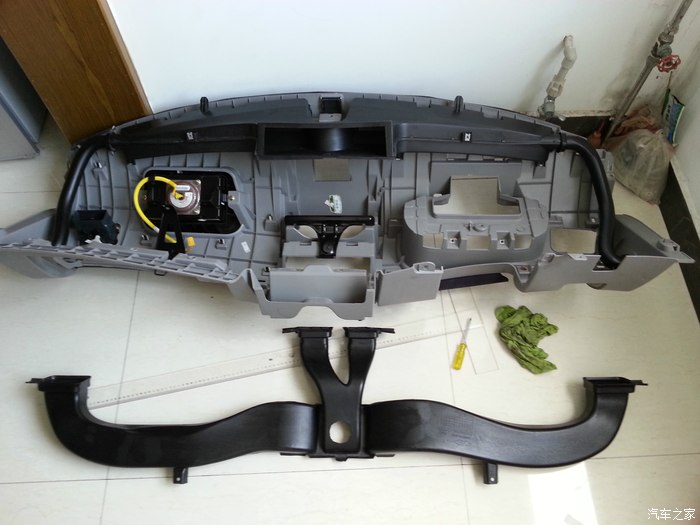 懂猫之人都知道,不管是舒适还是豪华,大猫的后排都是不带出风口的,正副驾驶位底下虽然有两个出风口,但也是吹脚模式,空调自动模式那里是不出风的。虽然大猫的空调效果不差,但是在炎热的夏季里,坐在后排没有凉爽的冷风铺面吹来终归还是不爽,所以为了老婆和小情人的乘坐舒适度,一咬牙一跺脚,拆了!