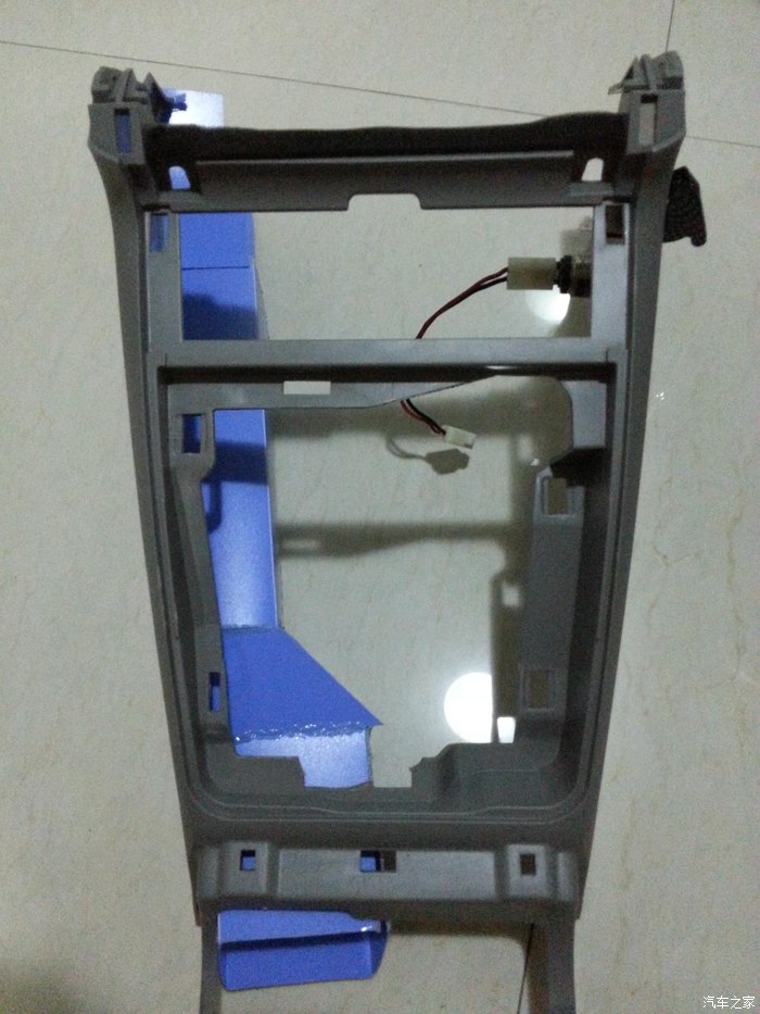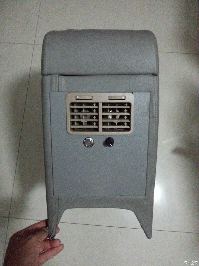 为了安装出风口,扶手箱盖板必须要切割一下。