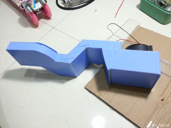 又由于原来的风机太大装不进去,只得第三次重新买了涡轮风机,这是尾段第二次定型。