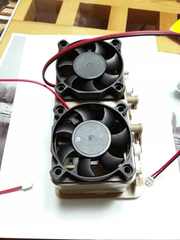这里出现了第一个小波折,波纹管接上后,试了一下风量,微乎其微,考虑到可能波纹管的风阻比较大,于是又买了两个5cm直径的电脑散热风扇,左右风口各一,一头吹,一头吸,解决风量太小的问题。
