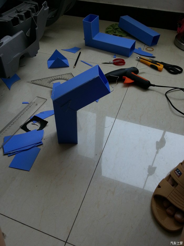 PP板到了,介子刀加热熔胶枪,第一段管子做好装车试验