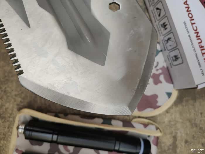 这款多功能折叠锰钢兵工铲是汽车之家活动礼品,没有具体的品名标示及相关产品信息,外包装只有“多功能折叠德国锰钢兵工铲”字样,拆开外包装,里面的产品质感还是不错的。