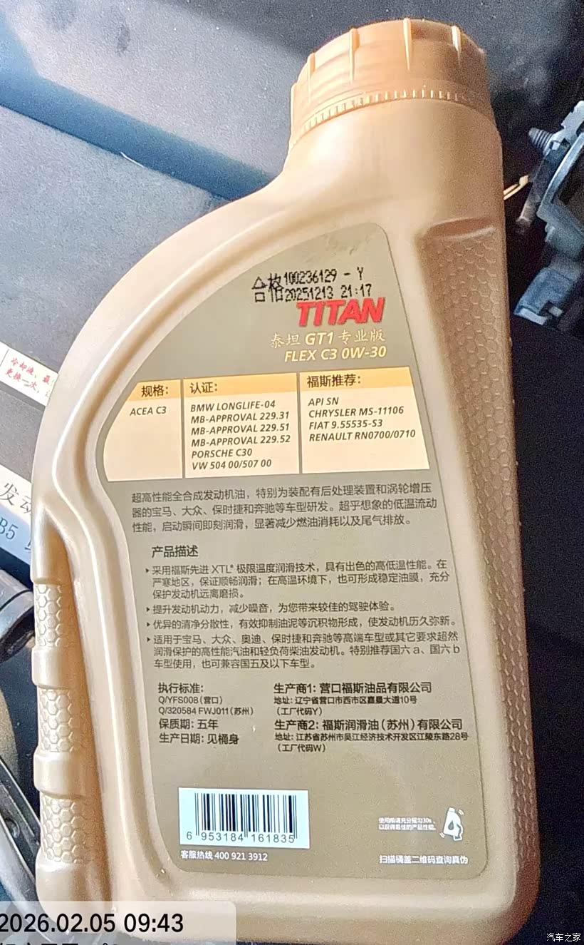 2015款标致508 1.6T用福斯0-30 C3机油完全可以,适配性没问题,这款发动机原厂就要求低灰分的0W-30机油,C3认证刚好匹配,放心用就行,注意选正品渠道的机油即可。
