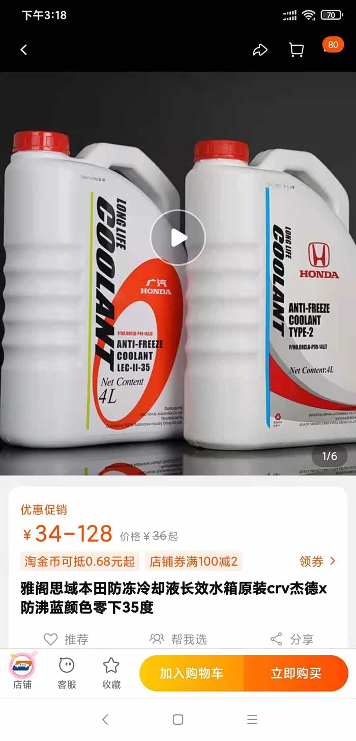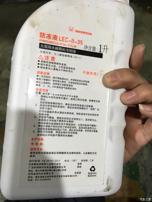 当然是本田原装的,本田原装防冻液十年二十万公里更换一次。原装添加原装的就可以了,某宝店可以买