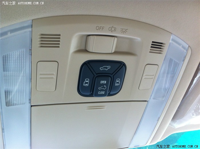 后排独立空调,前面那个方格区域不知道怎么打开,我看宣传册上写的配置是DVD显示屏,问4S销售,他说往上一推就开,我推半天,差点推成敞篷的,也没推开。宣传册上说是电动折叠的,用户手册上没有这个地方的介绍,纳闷了,有明白的大侠帮小弟解答一下,肿么回事?是没给我配置?还是选配的,还是。。。。
