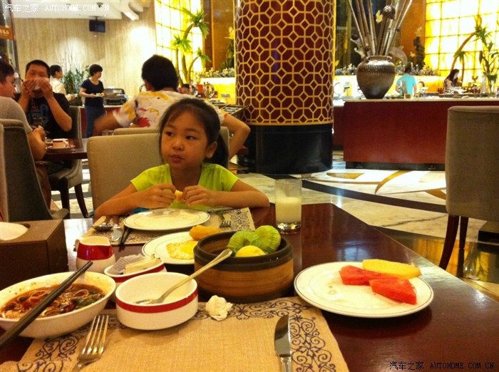 。因为我们起得太晚,自助早餐差不多没有东西吃了,女儿就着一个荷包蛋干掉了两碗土豆丝