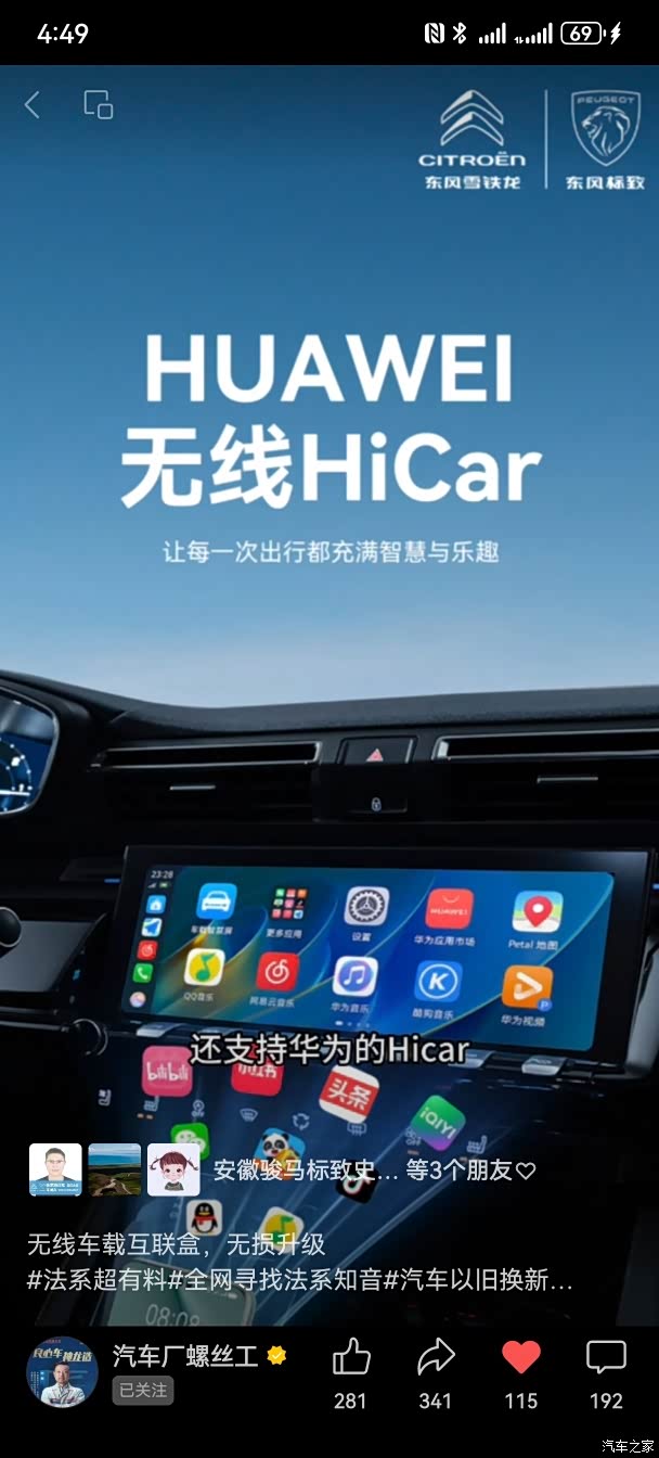 它的兼容性超强,只要你的车机自带有线carlife ,不管你用的是安卓手机、华为鸿蒙系统手机,还是苹果手机,都能实现无线互联,真的太方便了!最近我用华为鸿蒙手机连接,上车自动秒连,手机上的导航、音乐等应用直接同步到车机大屏上,屏幕清晰,操作流畅,完全没有卡顿和延迟。