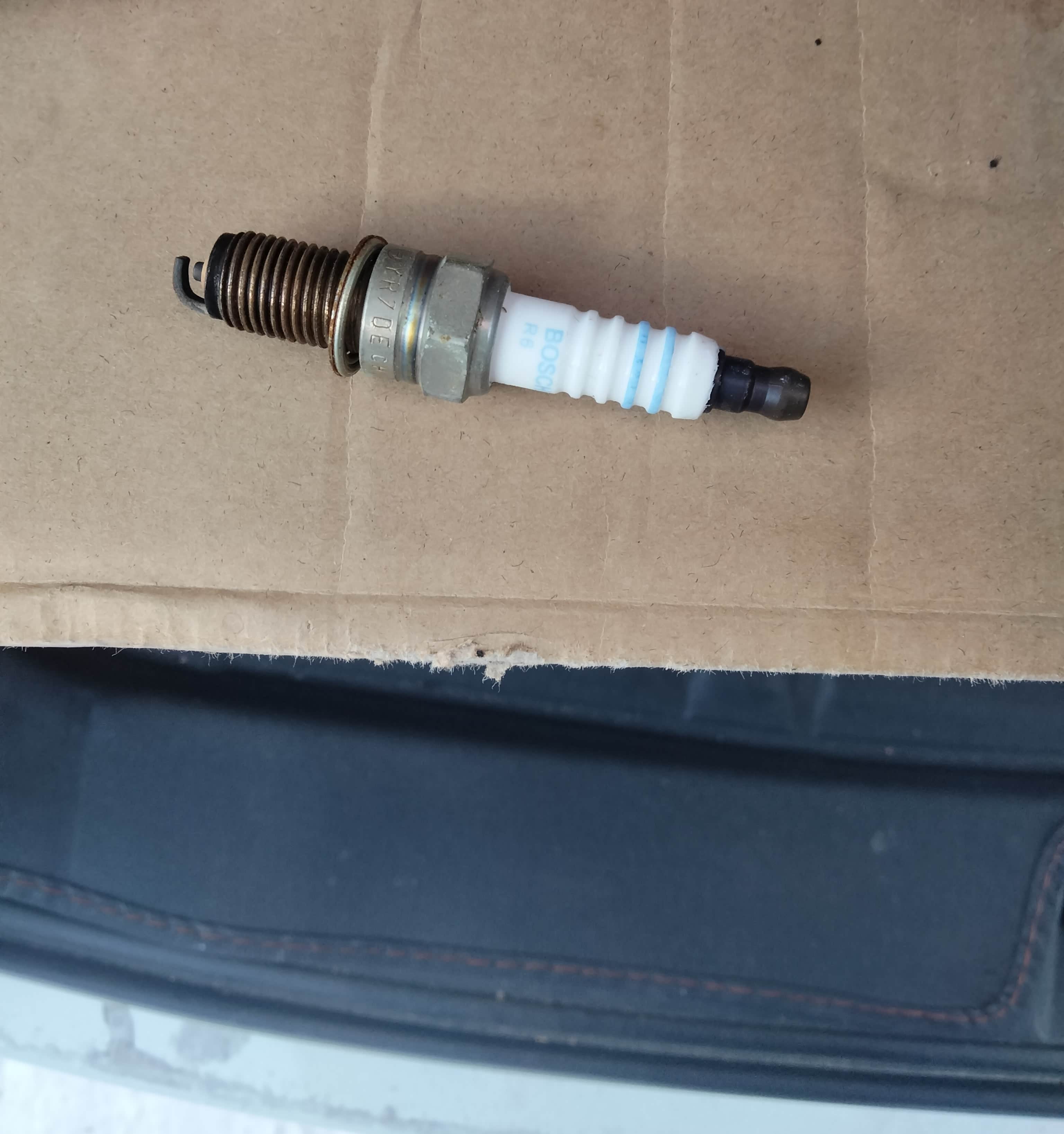 换完火花塞打着火,感觉发动机抖动小了一些。出小区转了一圈,原先换挡之后加油有顿挫的现象消失,里程表显示六万七千公里,原车主应该是没换过。换下来的火花塞是博世镍合金的。