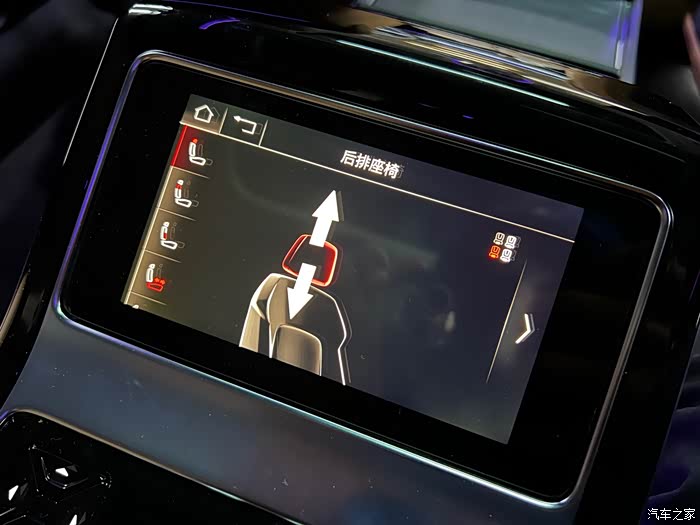 这是位于两个后排座椅中间的控制面板,看到上面的三大控制区域了吗,这仅仅是针对座椅的。