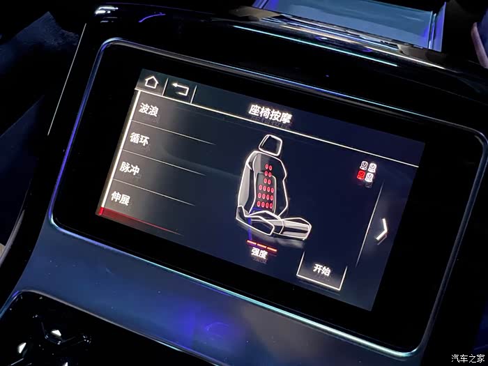 后排座椅支持各种按摩模式,你想找到一个不舒服的按摩模式都难啊,波浪、循环、脉冲、伸展,每种都支持三种强度匹配,这要是长途出行,选一个模式,舒舒服服的到目的地!