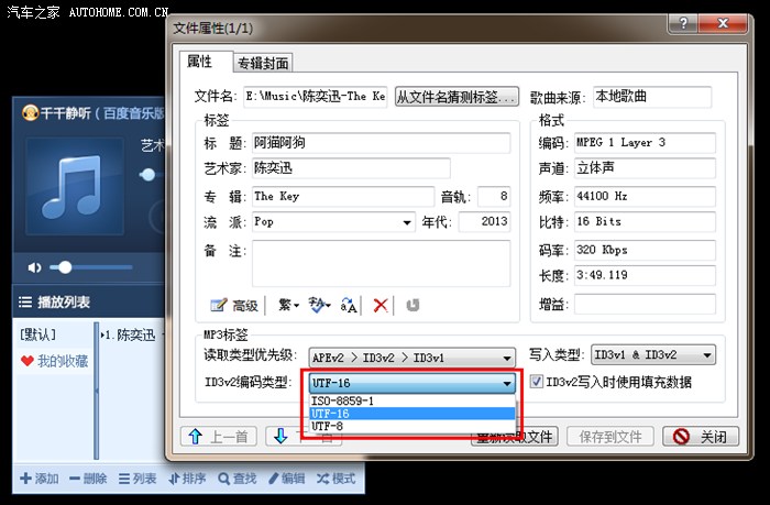 接下来在ID3v2编码类型的地方,将编码类型改为UTF-16,如下图: