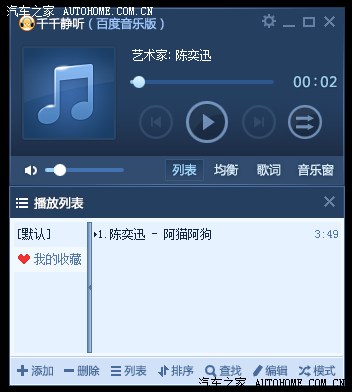 刚刚看到有车友在使用优盘播放mp3时,中文歌名和专辑名在屏幕上显示乱码,就发一个解决办法吧。这个问题的原因是MP3文件的歌曲信息编码格式,于13款14款,汉不汉化没有关系。解决这个问题,需要用到PC一台,千千静听(其他可以编辑MP3属性的软件也可以)首先,把优盘插入电脑,把需要调整的MP3文件拖进千千静听的播放列表里,如下图:然后在歌曲名字上点击右键,选择”文件属性“。如下图:(歌曲很多的话,可以全选之后批量修改。)接下来在ID3v2编码类型的地方,将编码类型改为UTF-16,如下图:然后点击保存到文件OK啦!再把优盘插到VV上,屏幕就能正确显示出歌曲的中文名字啦~