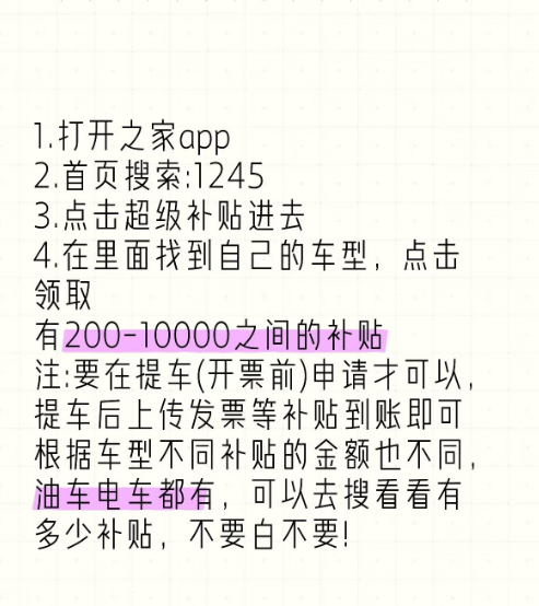 汽车之家官方补贴链接?滴滴滴!汽车之家官方补贴活动来啦~官方补贴无套路。?购车先领券,买车超划算!汽车之家活动,领取后注意有效期时间,一般是七天。购车后,上传发票自动到账。与4s价格/置换/报废/政府补贴均无冲突领取方法:1、点击文字“汽车之家官方补贴链接“”直接跳转,选择心仪车型,直接领取2、汽车之家主页搜索关键词1245-点击超级补贴活动页面-选择心仪的车型-领取即可汽车之家官方补贴链接