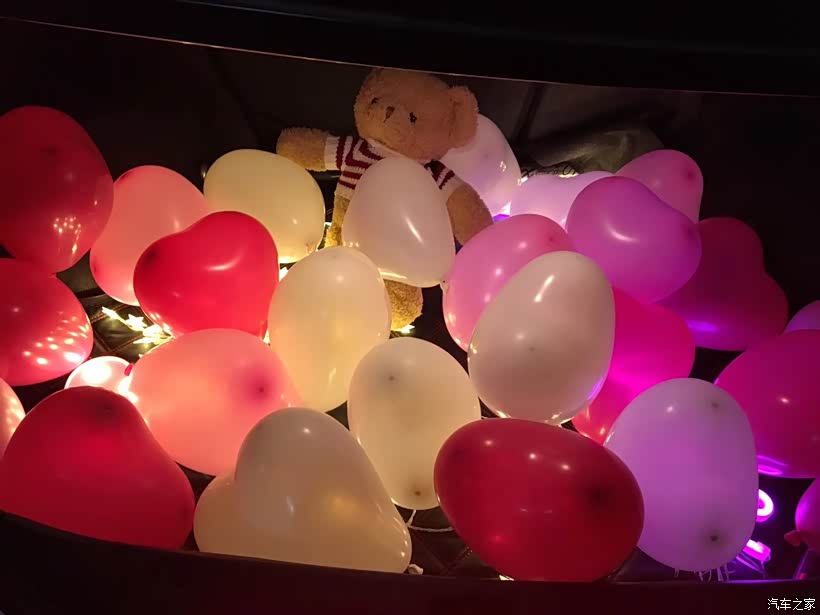 后备箱也装饰了一个上午,氛围感超好!打开后备箱老婆当时也很惊喜