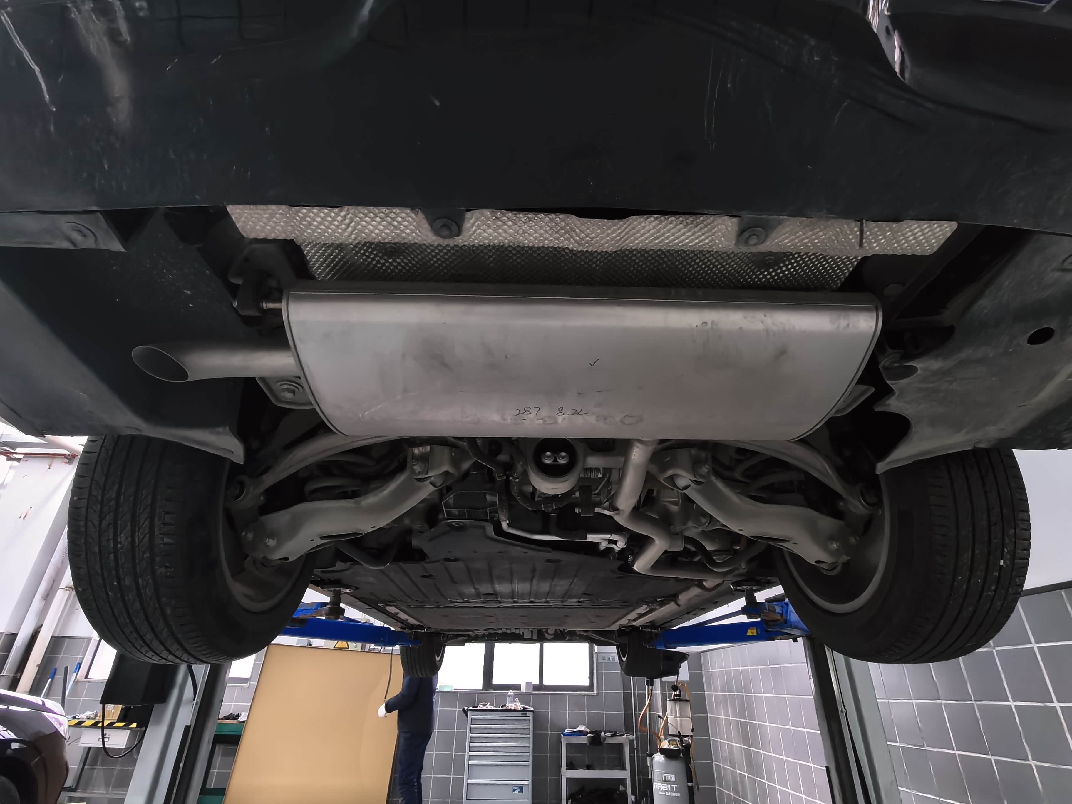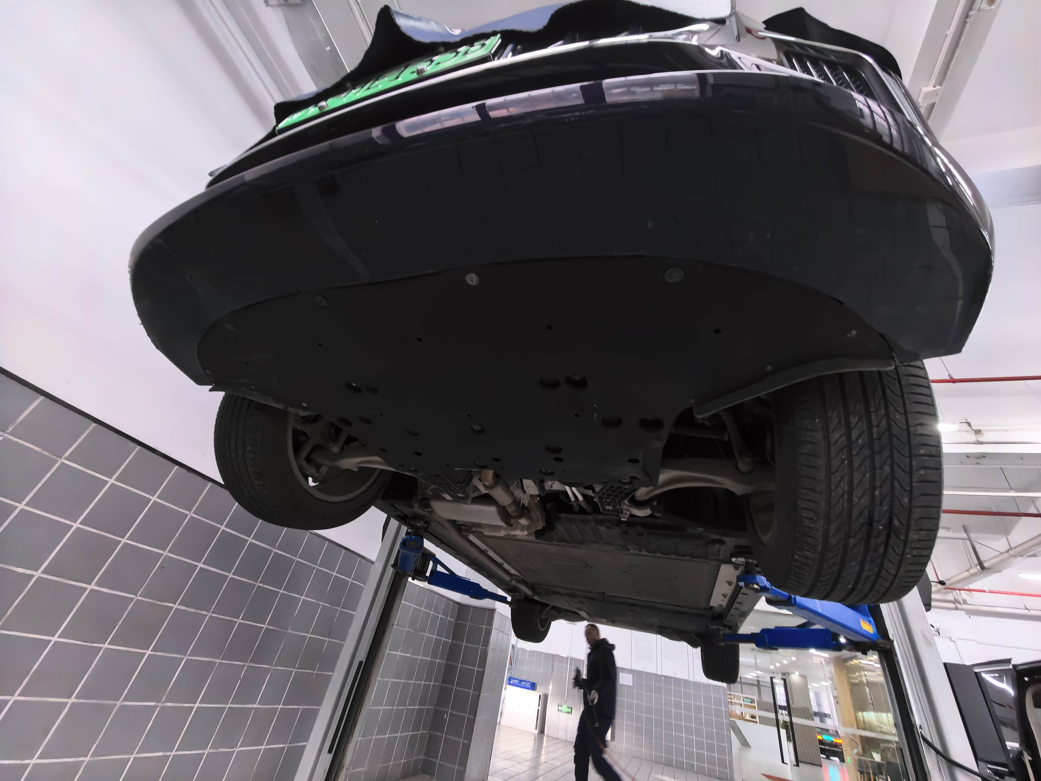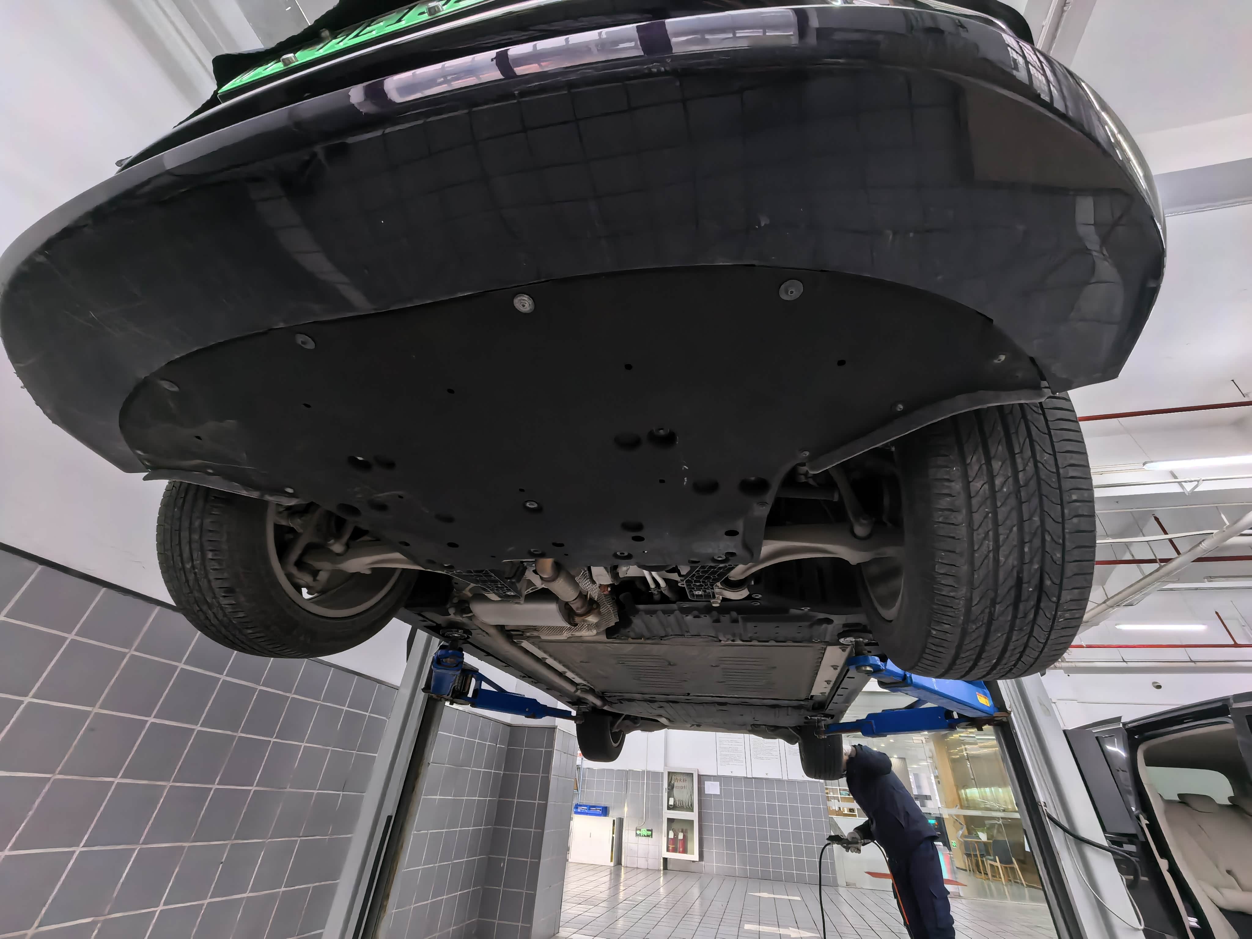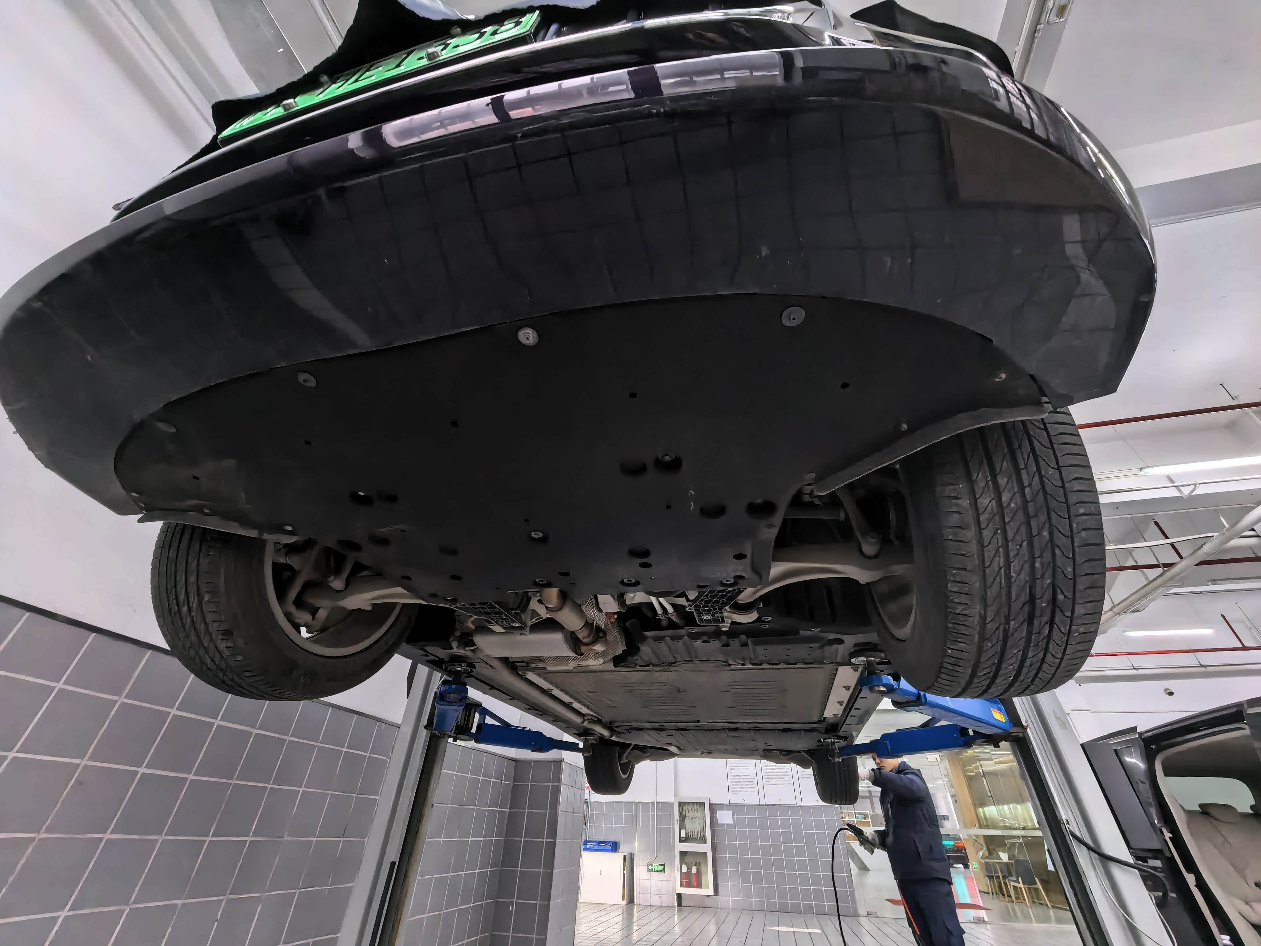 检查完轮胎,师傅开始全面检查底盘系统,从发动机底盘护板、悬架、摆臂、减震器,到排气管、油路、电路,从头到尾看了一遍,用手电仔细照每一个角落,确认没有刮擦变形、没有漏油漏水、没有螺丝松动。我的梦想家底盘状态一直很好,这次检查也没有发现任何问题,悬在我心里的一块大石头终于落了一半。