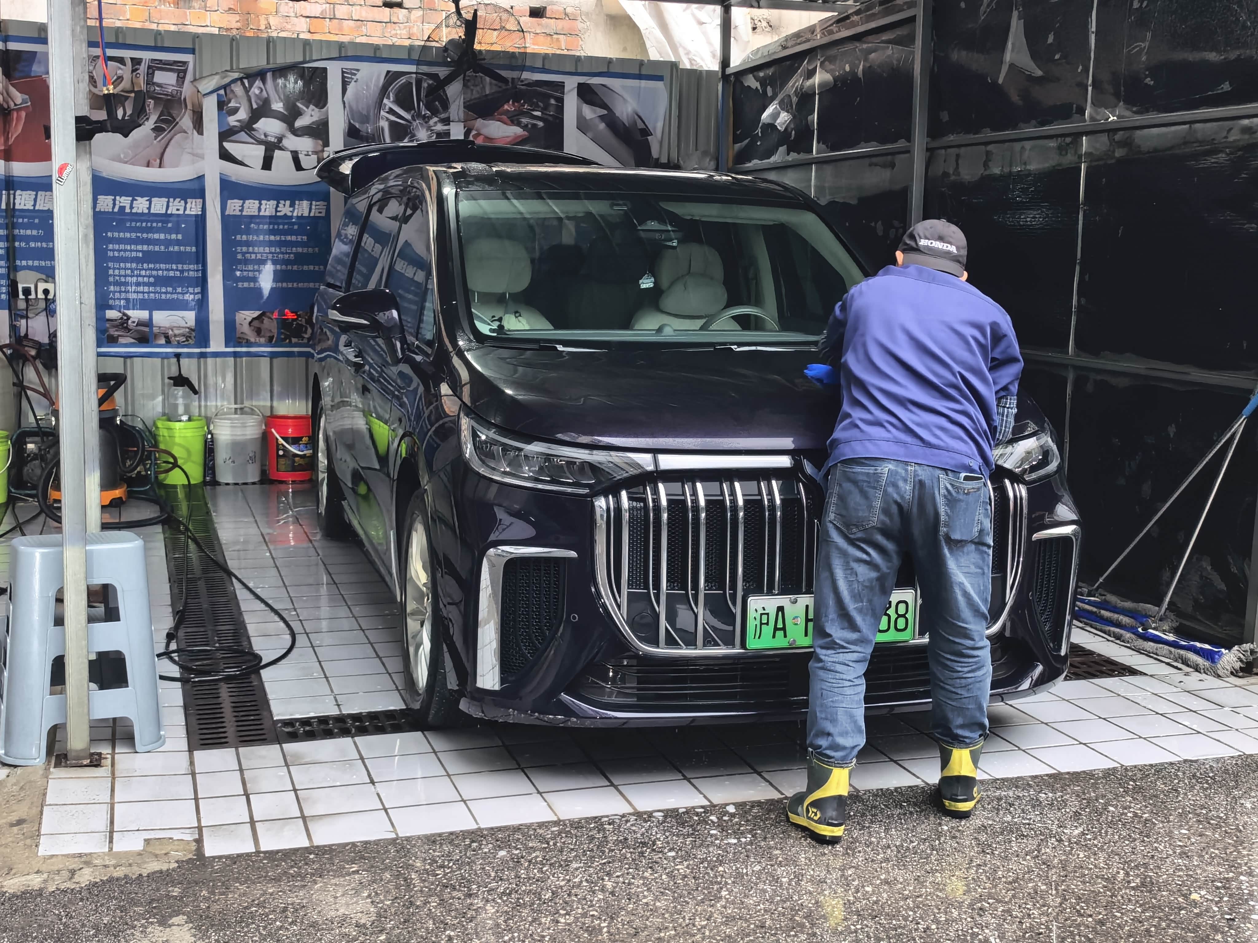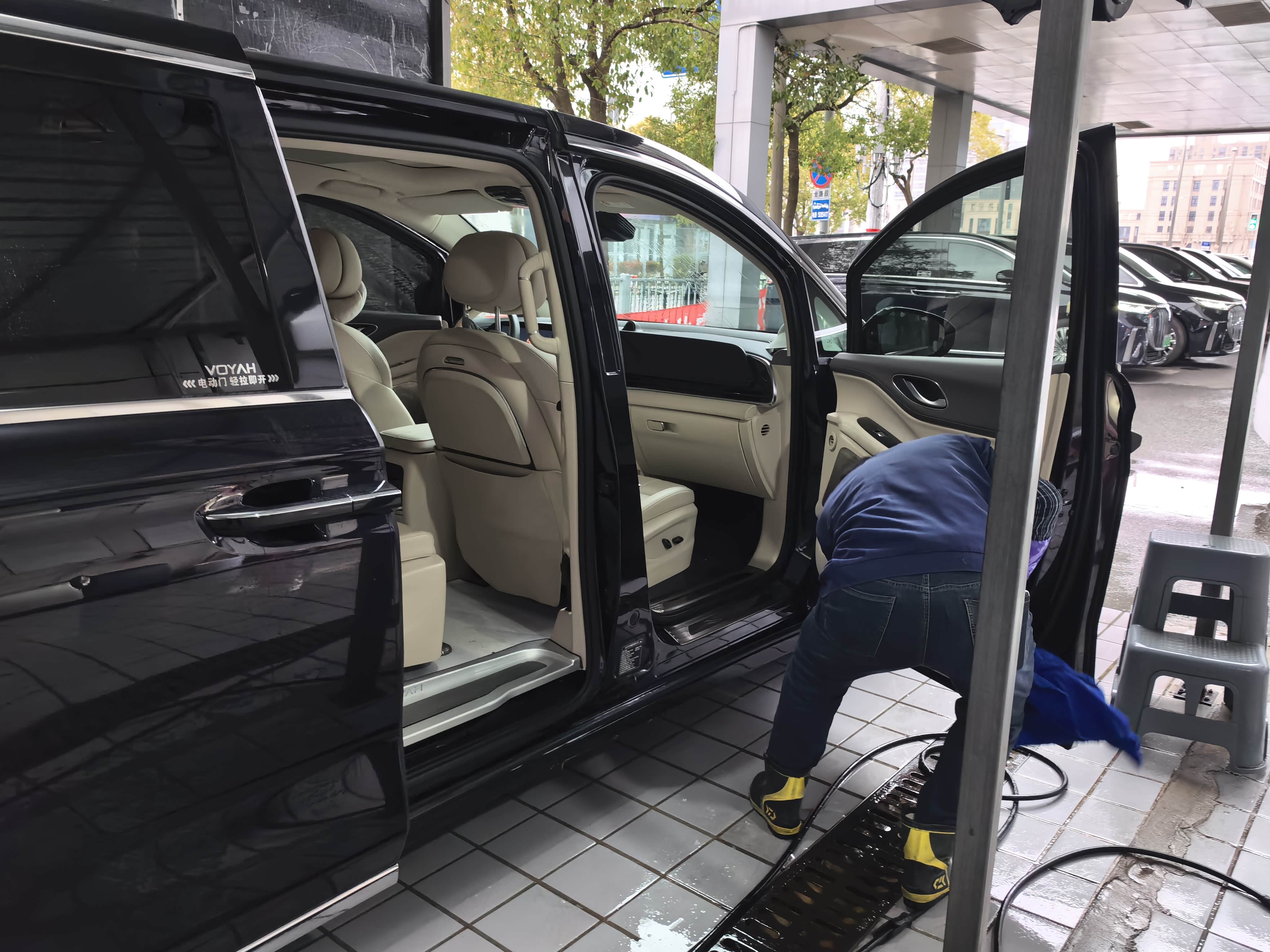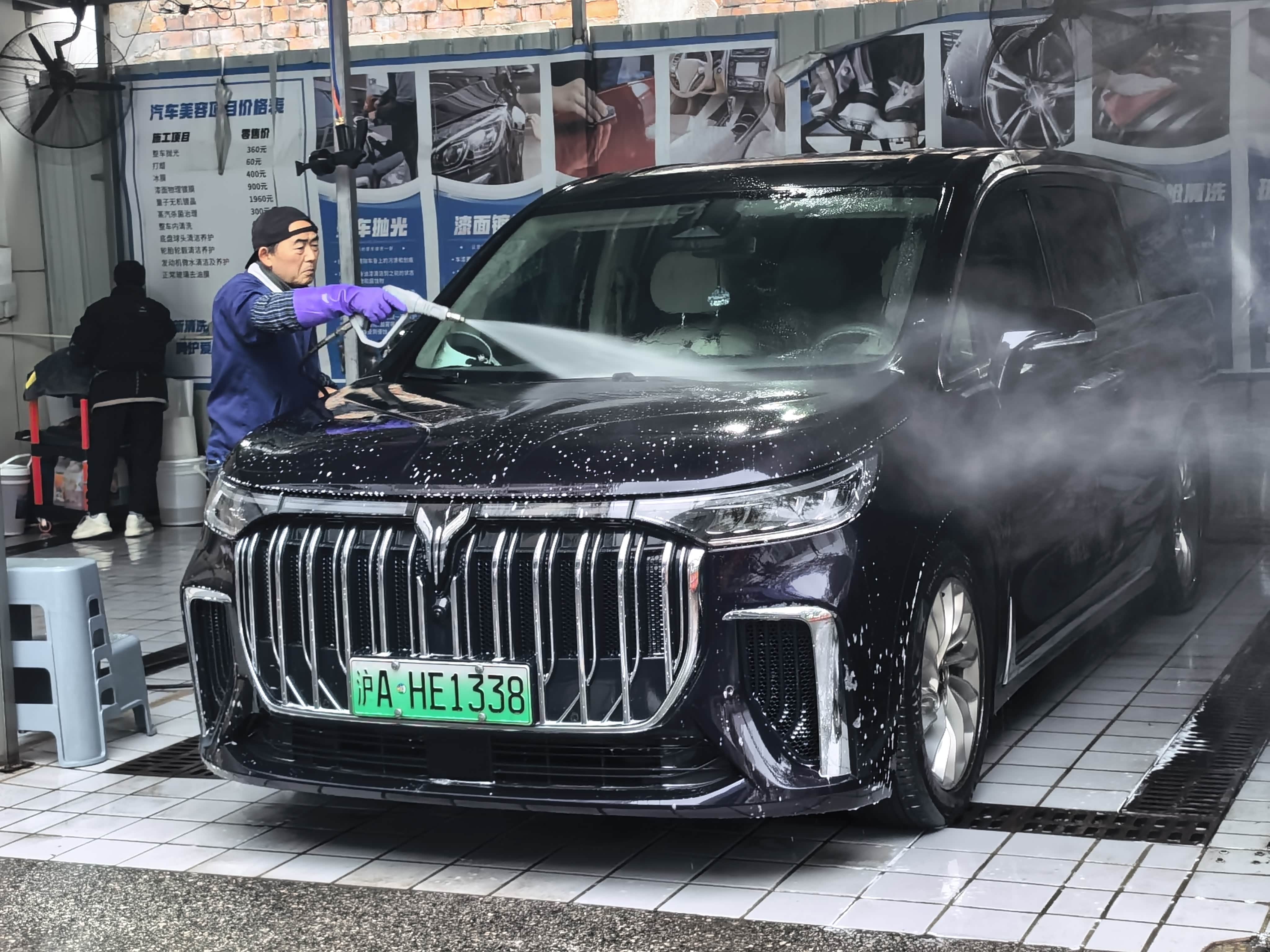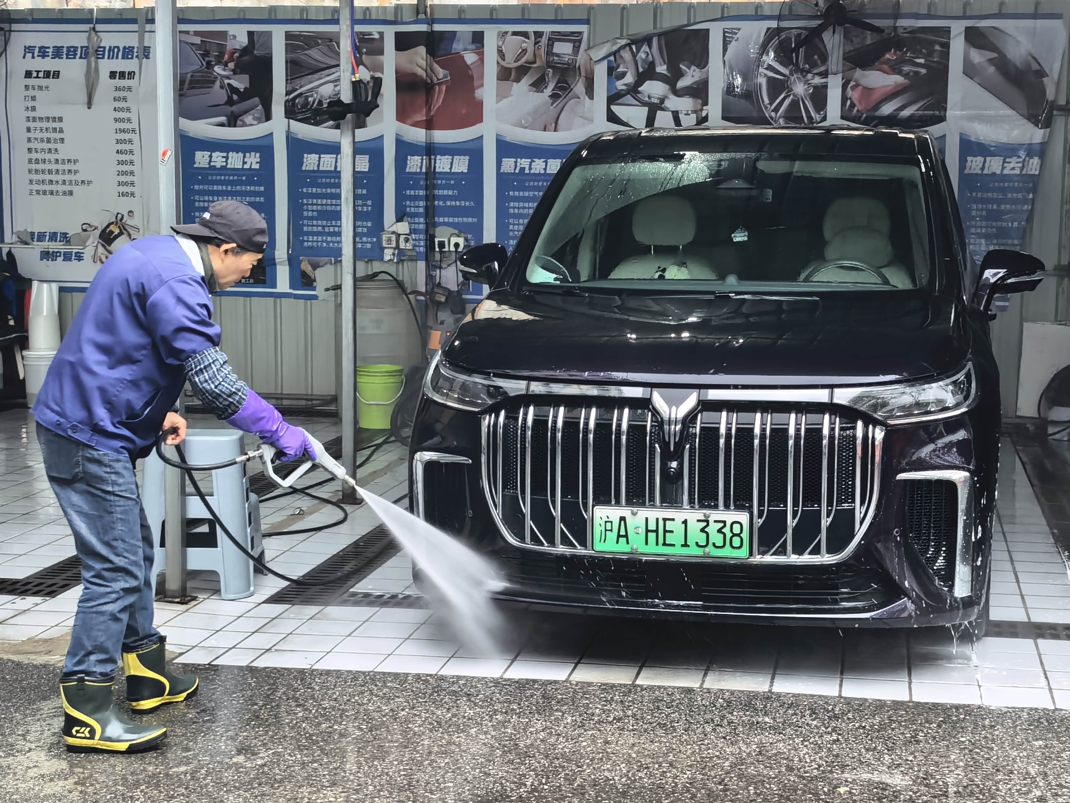 洗车师傅的动作非常麻利,先冲掉车身表面的灰尘和泥沙,然后打上泡沫,仔细擦拭每一个角落,轮毂、门缝、后视镜这些容易藏污纳垢的地方都没有放过。冲洗干净之后,师傅用干净的毛巾把车身擦干,不留一点水痕。内饰部分,师傅用吸尘器把脚垫、座椅缝隙、后备箱都吸了一遍,仪表台、门板、中控屏也都用专用抹布擦得一尘不染。洗完之后,我的梦想家焕然一新,看起来跟刚提车的时候差不多,看着干干净净的爱车,我心里的等待焦虑也少了一大半。
