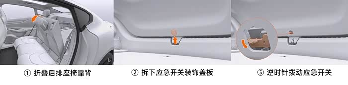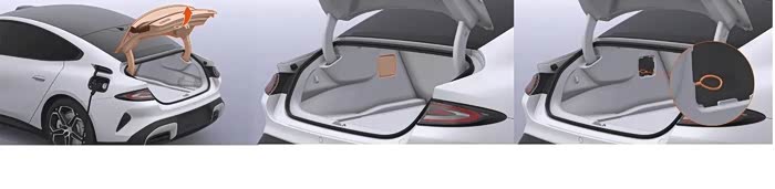 如遇紧急情况,您可以从内部使用机械方式开启后备厢,具体操作如下:
