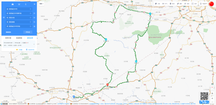 ③马召镇~太白县(119公里,大致耗时2~3小时)。此段行程将路过关中平原,然后攀升至太白县海拔1600m。预计在晚上8点到太白县。