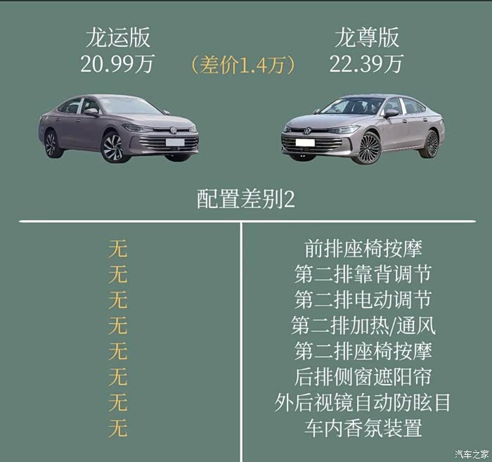 3:只有最顶配才有后排加热、通风、按摩、电动调节、遮阳帘、外后视镜防炫目、前排座椅按摩。顶配的某些功能完全可以放在中配车型上面一些。如果体验更好用户只能花更多的钱。