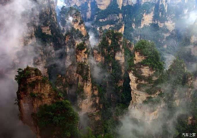 袁家界给我的第一眼感觉就是如梦如幻,特别下了点雨后,些许雾气更让山景显得神秘。后来随着许小蜜的介绍才知道原来这里还被人称作“潘多拉世界”,特别形象又真实;从来都不知道峰峦叠嶂中也可以变幻莫测~雄险秀野,神态各异。峡谷深处,千百根石峰 石柱 奇伟突立。峻峭之石,如英武将帅;嵯峨之峰,似勇猛壮士。有声有色,若静若动,形象逼真,呼之欲出。