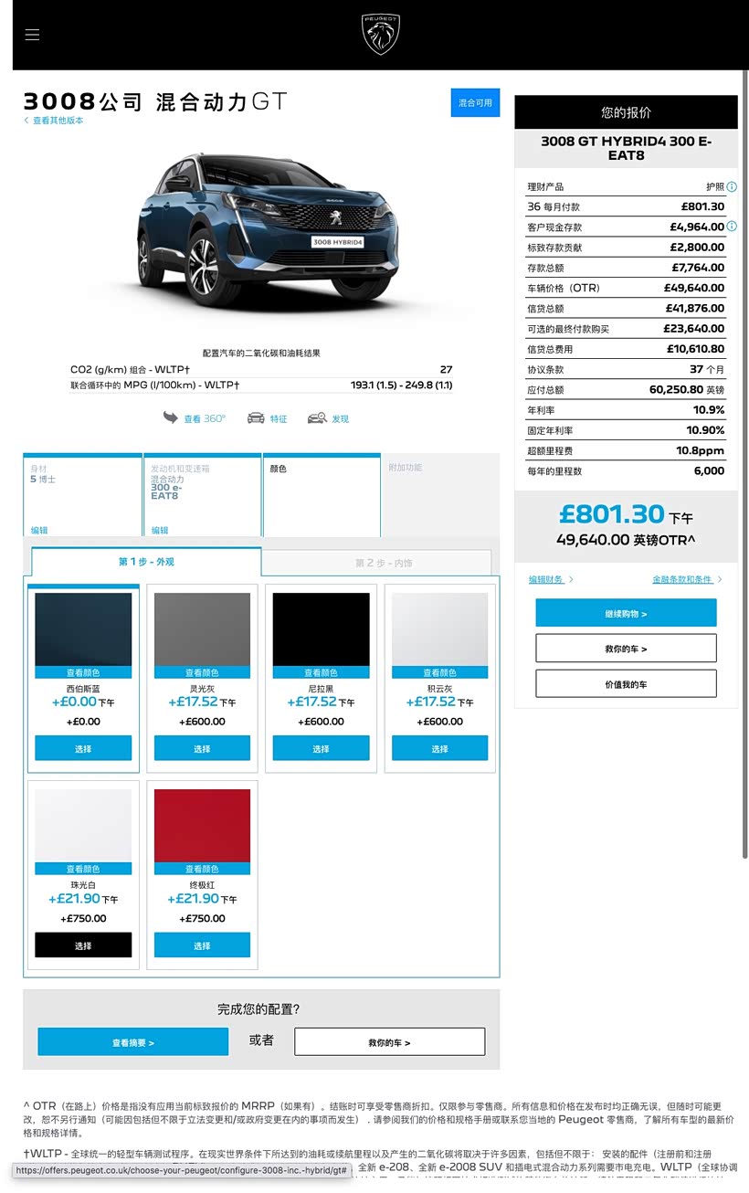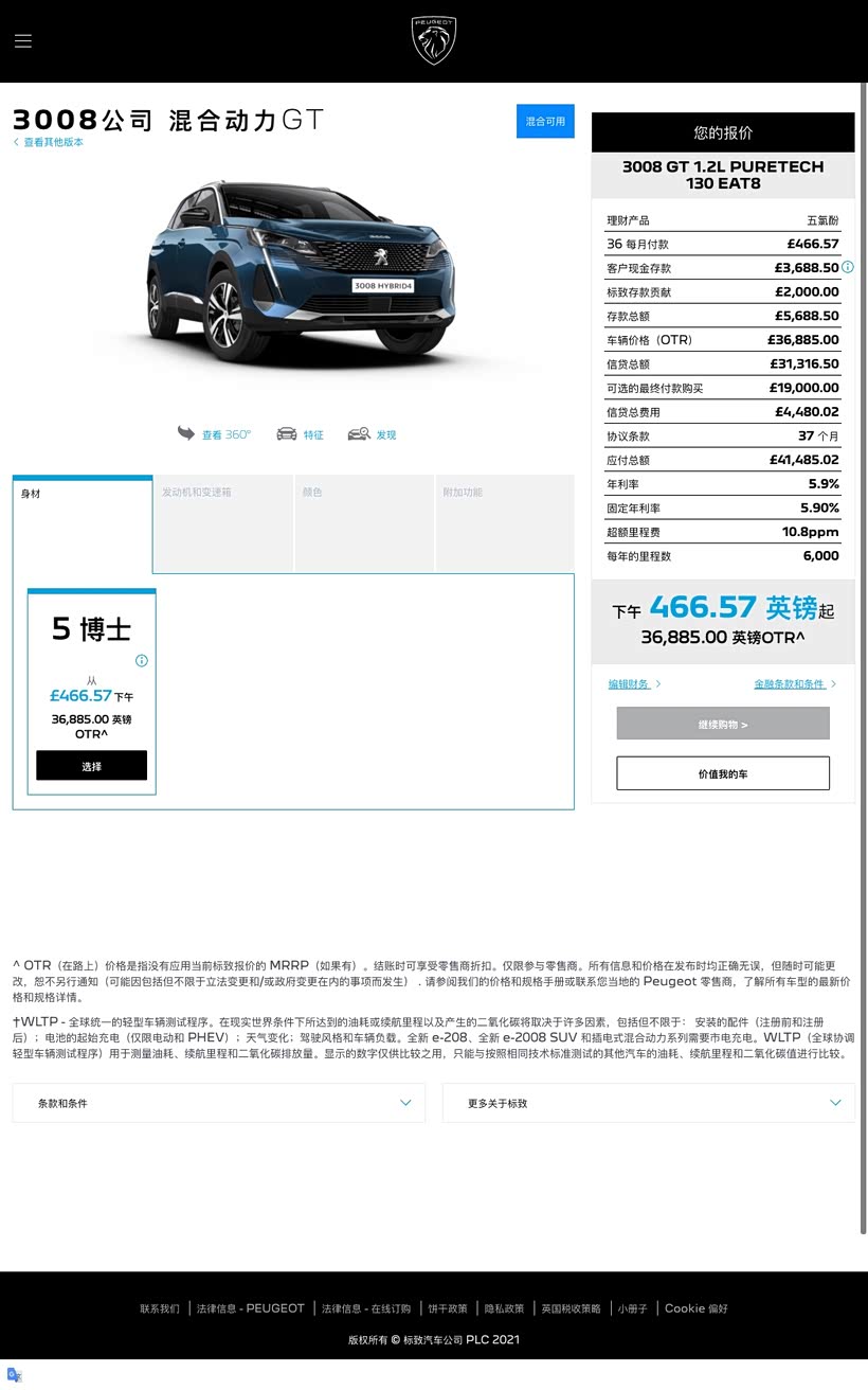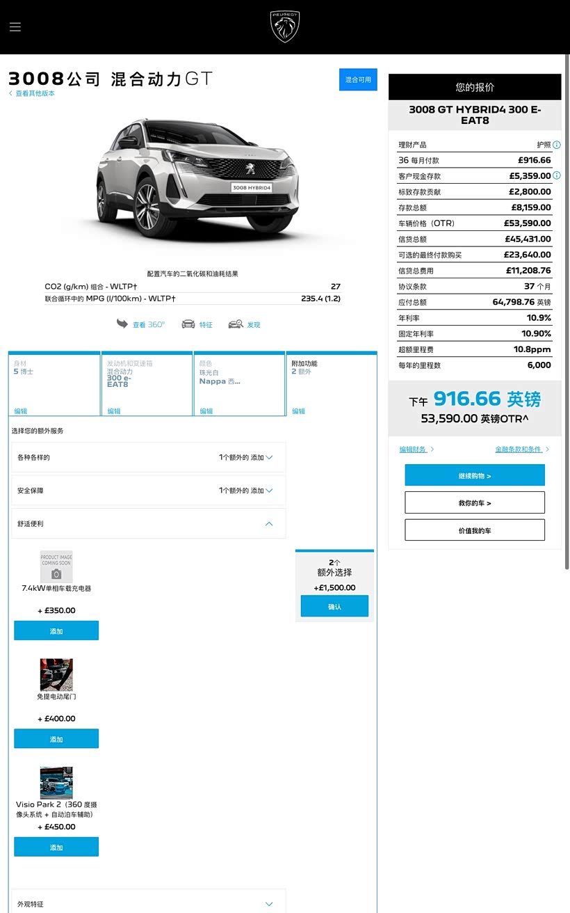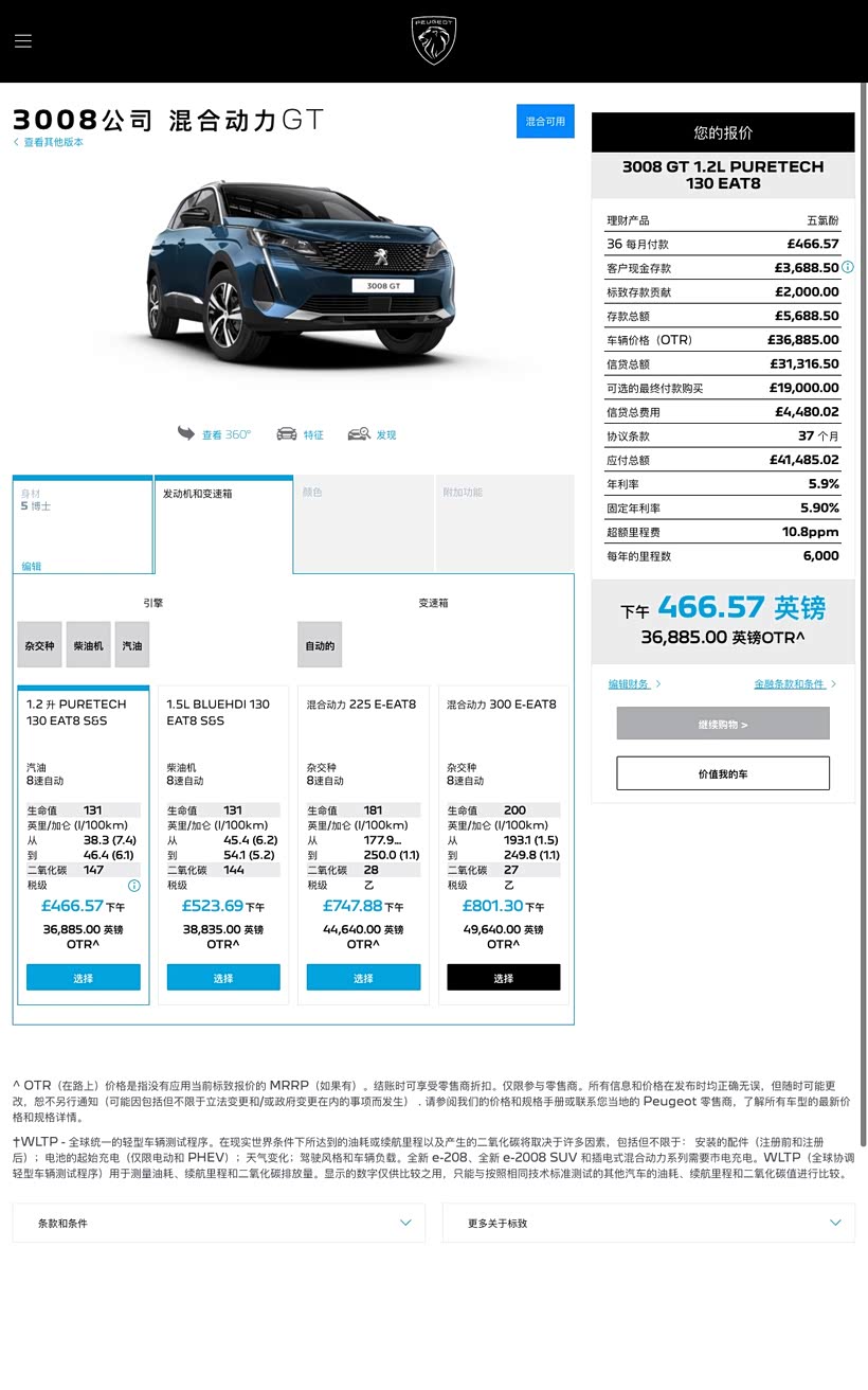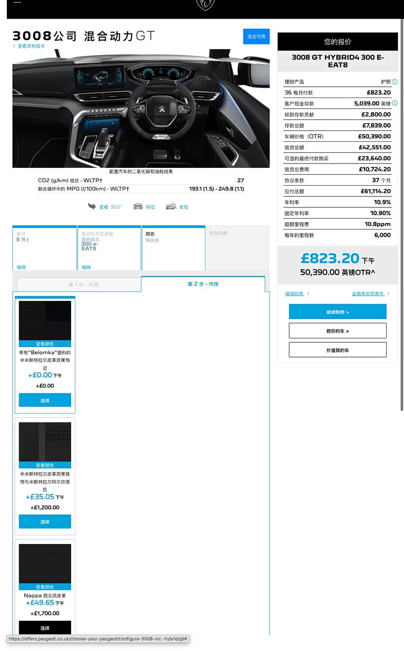 英版3008 PHEV配置和选装