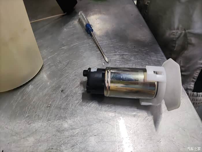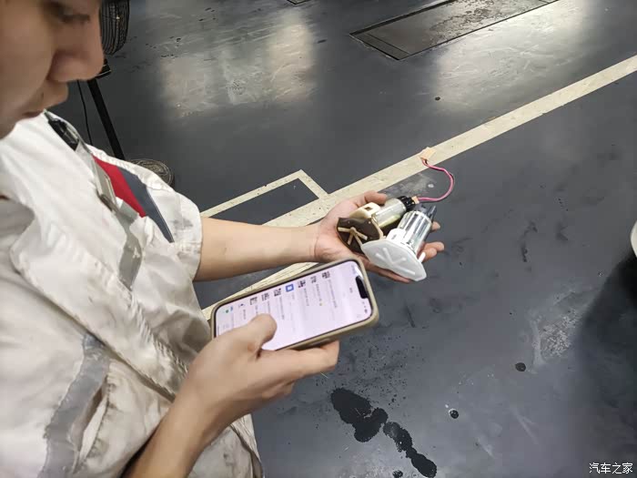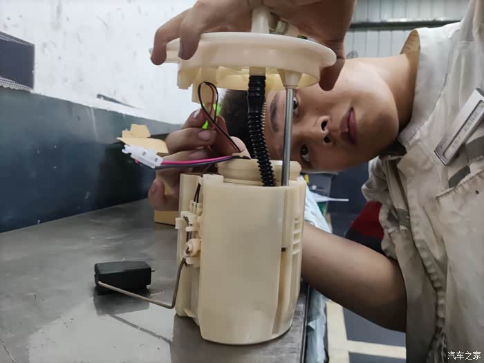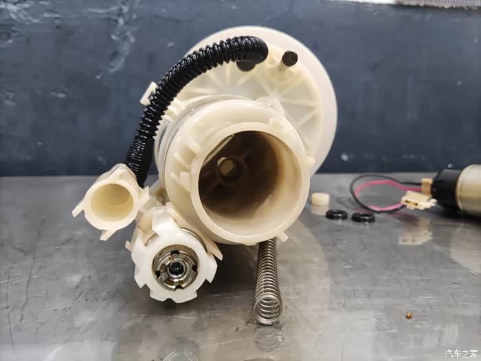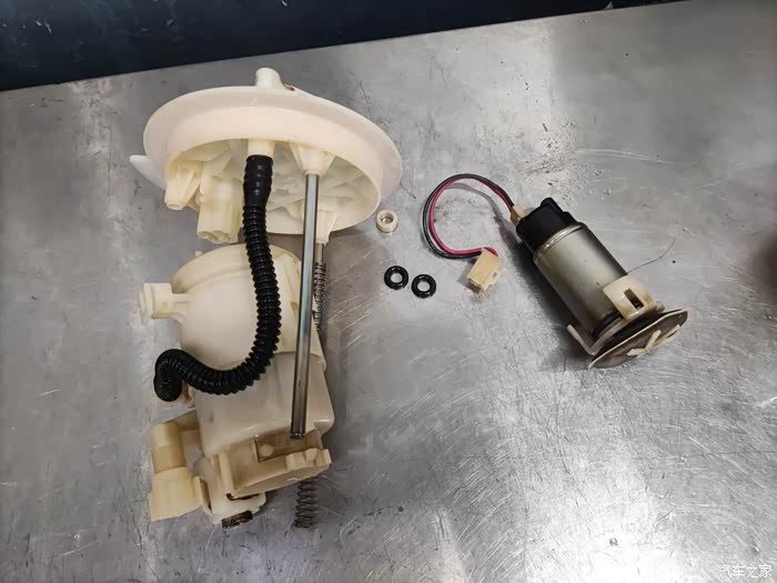 4、拆下来的燃油泵+滤清器(拆下来燃油泵里面有汽油,店里都处理掉了,没有放回油箱)