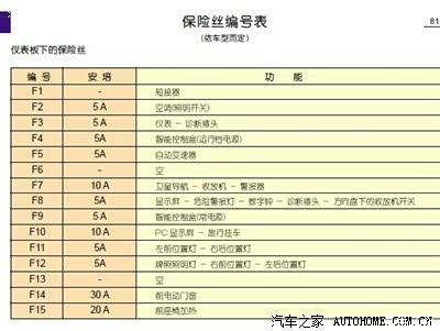 发动机保险丝盒的对照图,还有驾驶位的保险丝有的话发张图过来看一下,江湖救急,谢谢大家了!