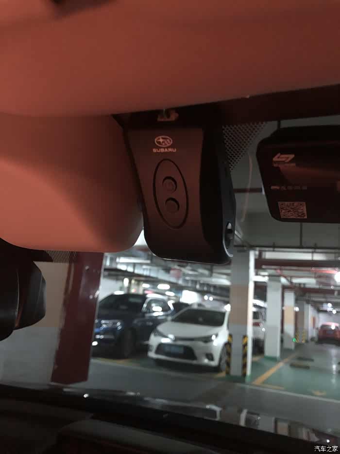 定车的时候呢,销售小姐姐就说了会送一堆东西,其中就有行车记录仪,然后到提车的时候销售就跟我说给我装的是刚回来的原厂行车记录仪,比以前的外面不知道哪里买来送的要清晰很多balabala,当时天色已暗,着急回家吃饭,就没有具体研究这个行车记录仪的问题。原厂自己制造就肯定不可能的了,最多是斯巴鲁授权第三方合作,不过它确实也是有斯巴鲁logo而且和官网上的这个”纯正精品“长得是很像的。(图是今晚上拍的,车库里比较暗)