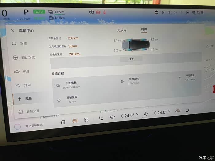 续航/油耗表现:刚提车4S店给充满电、汽油给加了23公里的量(估计是出厂前加的?),4S店到家里路程是30公里左右,满电状态下到站电耗准确,去油站加满92号汽油表显续航900公里(加了258元,40升多一点),特意这几天没充电测一下增程器的效果,电耗剩下50公里出了一趟市区,一来一回电耗在剩下15-20公里之间,增程器是已经介入供电给电机后有多余的电量再给电池充电,增程器介入阶段有试过加速超车,依然丝滑,加速平顺,轻松超车,没感觉到增程器介入的噪音。后续还需要跑高速试试实际油耗表现如何。