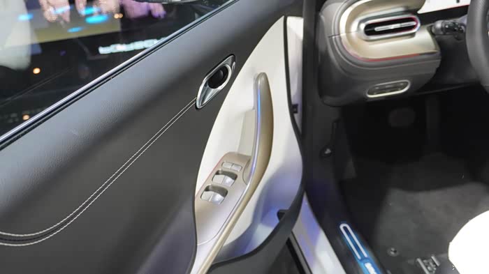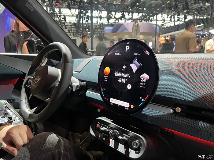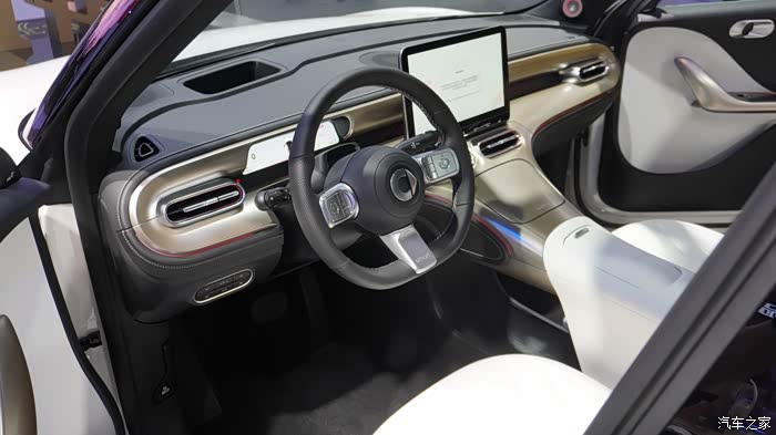 但内饰的变化很大胆!驾驶员前方并没有传统的仪表盘,官图上能看到方向盘前方有内凹的结构,这应该是HUD抬头显示的功能区。全新纯电动小型SUV