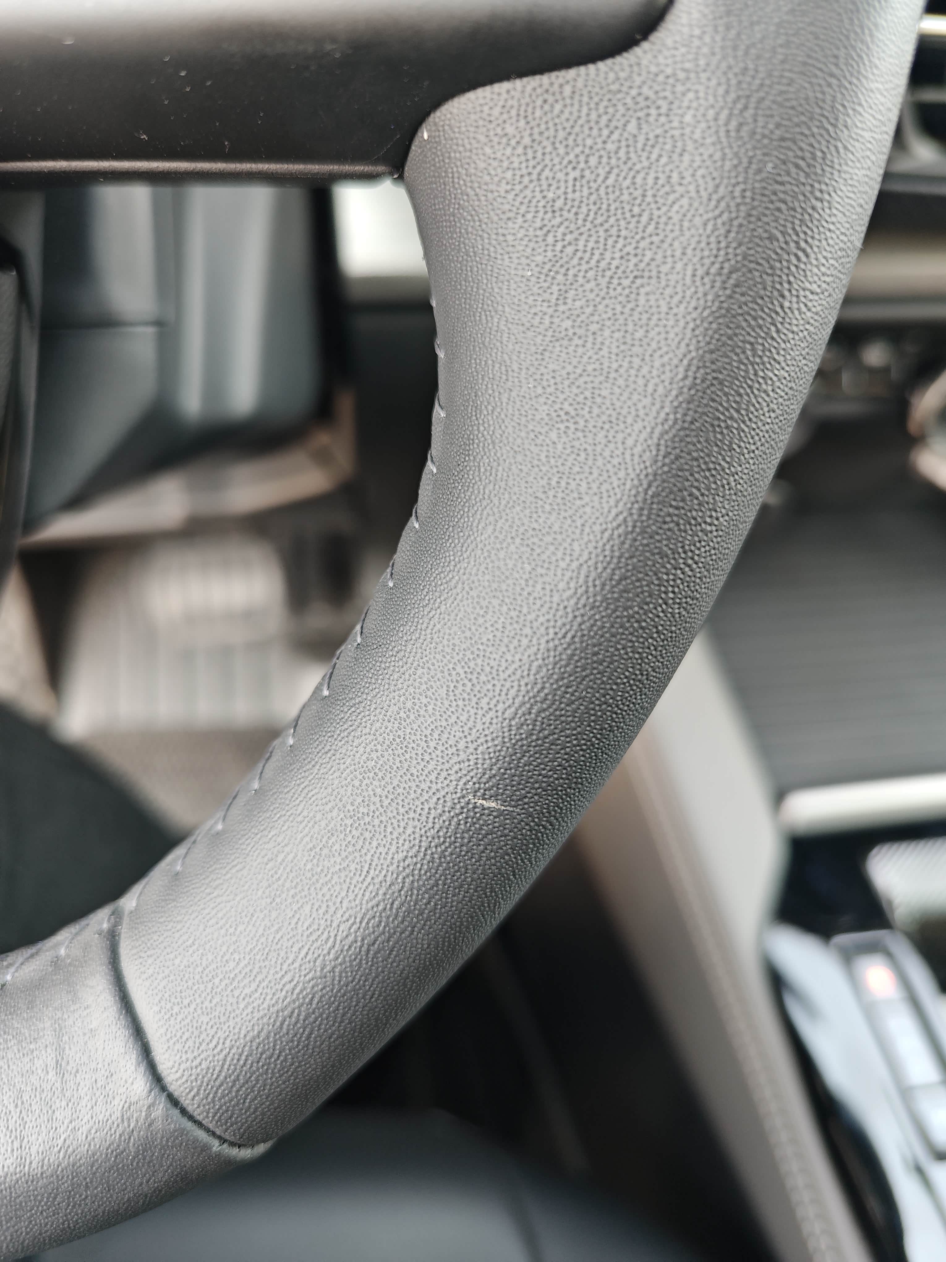 ②直行还好,转弯右点抓不住方向盘的感觉(滑手),完全没投原车方向盘给我的信心感,开起来抓方向盘很用力,特别是转弯的时候。不担心方向盘套和方向盘之间打滑,却担心手打滑抓不住。