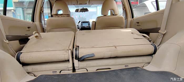 空间真是大。第二排坐三个人不用挤,最喜欢的是后备箱,超级大,二排座椅可以比例放倒,放倒之后还可以掀起来,拉东西真是好用,前两年家里装修,它算是立下汗马功劳。第一排座椅把头枕拿掉,推到最前面放到和第二排可以连成一张床,现在看来也是比较时髦的露营车。