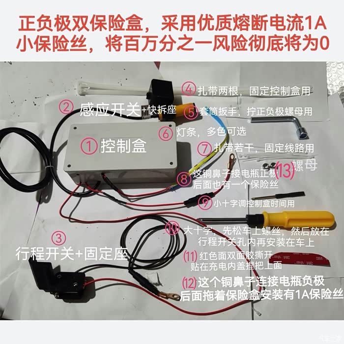 安全方面,本产品采用正负极双保险盒设计,并配有优质熔断电流仅为1A的小保险丝,让原本百万分之一的风险彻底降为0真正做到了安全使用,后顾无忧!