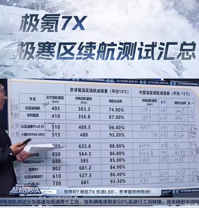🚗看过12月1日汽车之家冬季纯电首测的直播的朋友们,肯定对有些纯电车型在呼伦贝尔寒冷区的续航里程表现有个不一样的看法。测试环境的低温区温度在5℃——15℃之间,寒冷区的温度在零下20℃——零下15℃的范围内,可谓真的是在挑战纯电电池的耐低温的承受度。
