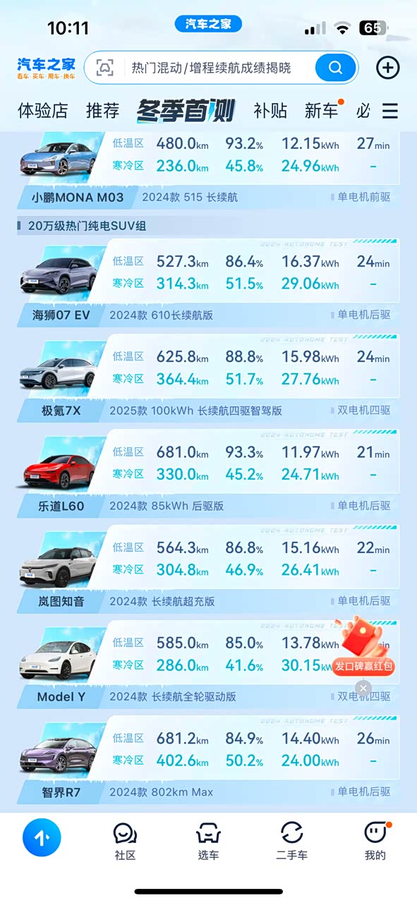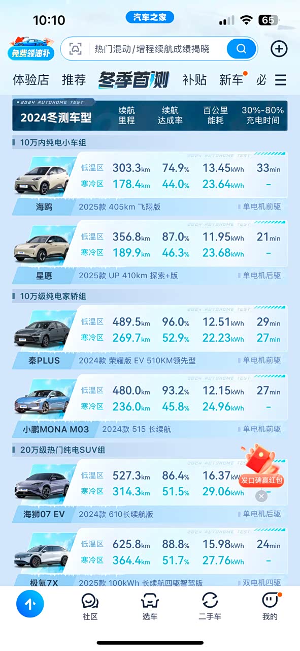 🚗众所周知,新能源尤其是纯电车辆在零度以下甚至低温情况下,续航有缩减这是正常情况。作为北方的纯电车主,冬天最明白这种体验,下雪天呢续航掉的怀疑人生都是存在的现象。所以我对汽车之家这个冬季纯电测试很感兴趣。