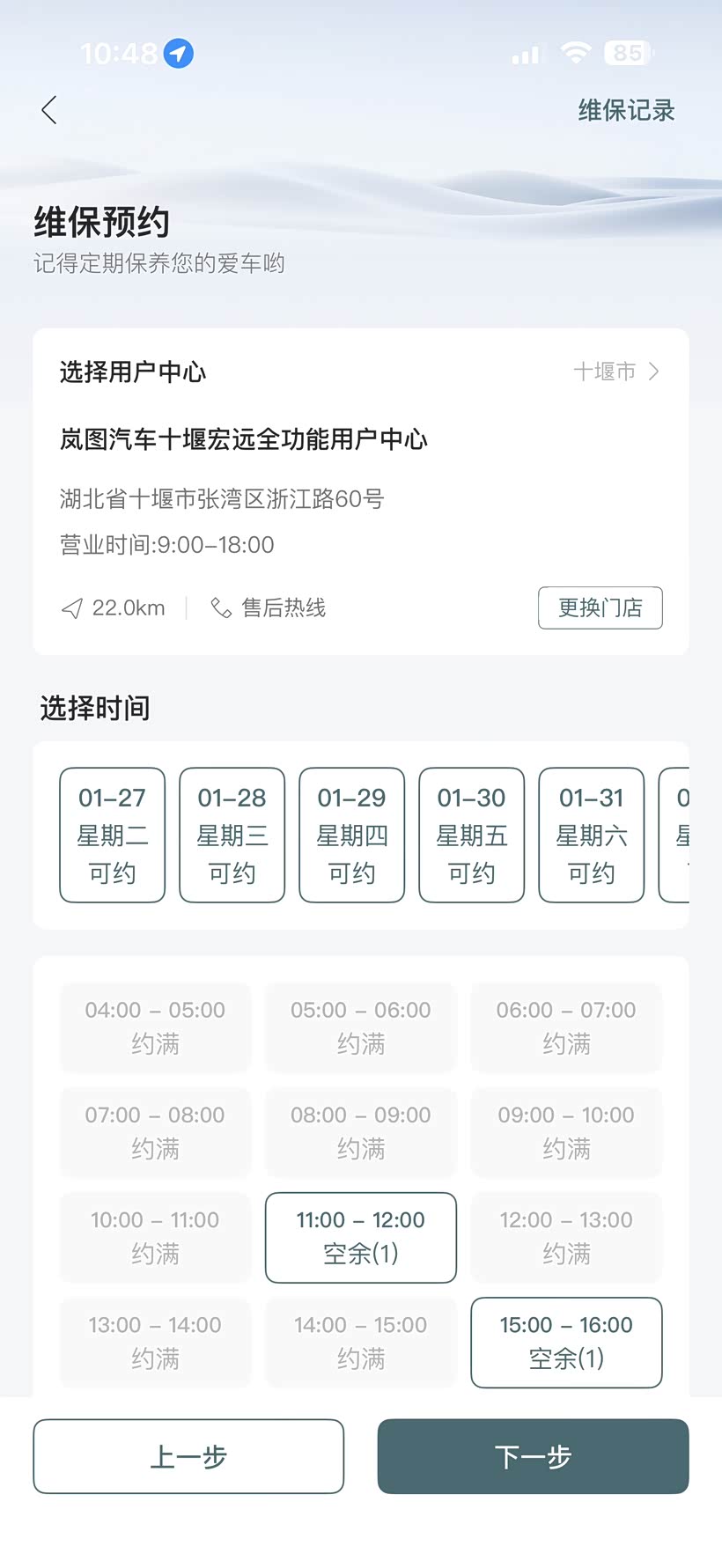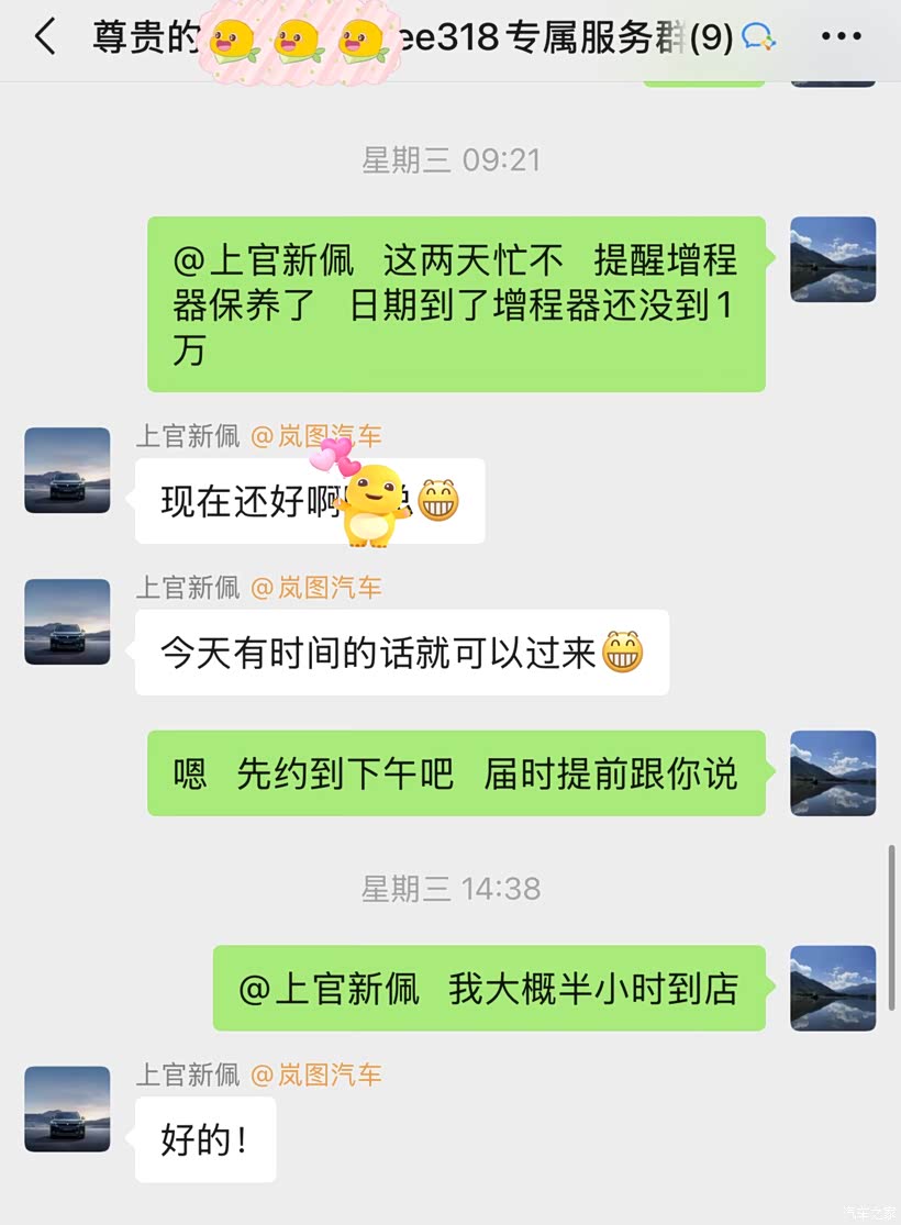 我的FREE 318增程器养护规则是 “1年或1万公里” 先到为准。上周一(1月19日),十堰正逢强降雪,我接到了岚图十堰宏远用户中心的贴心电话,一是提醒雪天行车安全,二是告知车辆保养期快到了。这主动服务,第一印象分就拉满了。