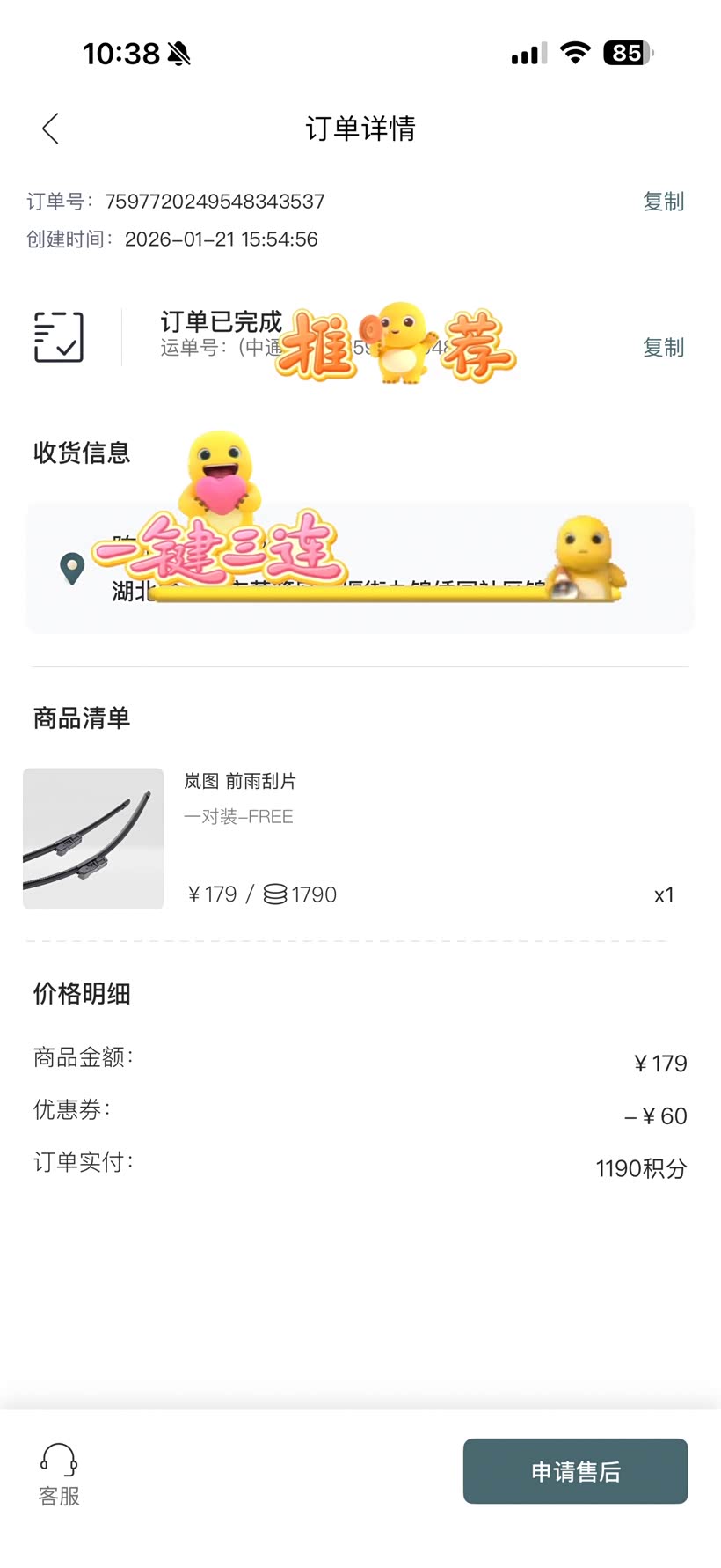 等待时,我忽然想起之前在APP抢的 “前雨刮更换优惠券”和“车内除菌除臭套餐抵用券”还没用。找到朱顾问咨询,她非常专业地指导我:除菌套餐可以直接下单,店里刚好有货,保养完就能做;雨刮优惠券则可以下单寄到家,到店免费安装或自己按教程动手。这种灵活处理,真正考虑了用户便利。