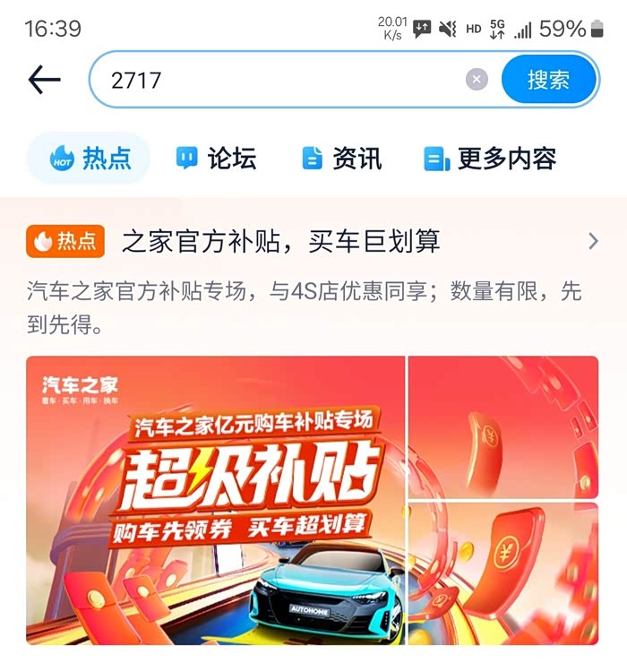 ① 打开汽车之家APP,搜索“2717”进入活动页,领取优惠直接抵扣购车款。