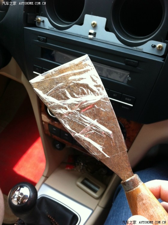 实在找不到硬一点的塑料板,只好找这个帮忙,为了安全起见,用透明胶布包裹了一下,以防磨损。