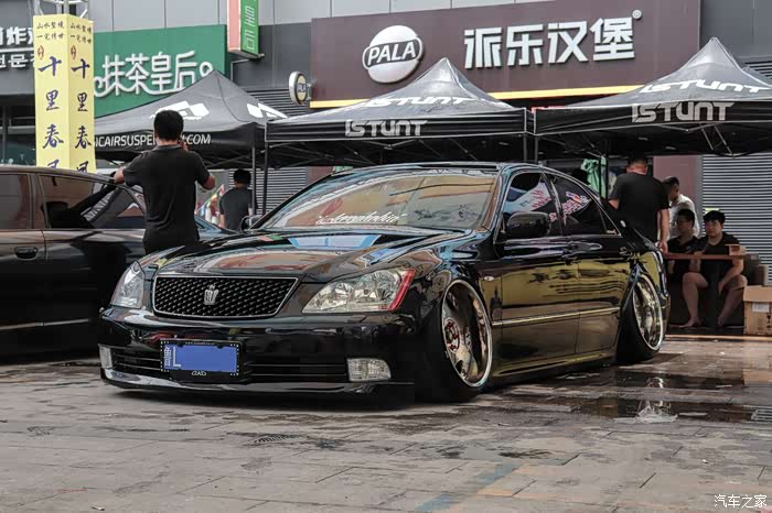 这是入口的人开始躁动,原来是来了一台大王,凌志LS,大抛边,大倾角,夸张的姿态使他一下子成为了全场的焦点,据说这台车是板车拖过来的,来的时候还封着保鲜膜呢!应该是怕再路上弄脏了吧。反正这台车来到还是“新鲜”的