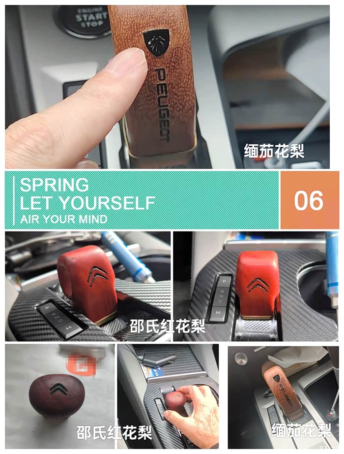 这么一看,搞颜色深一点的木头做挡把的话可能和408x这个车子的整体内饰更搭配。