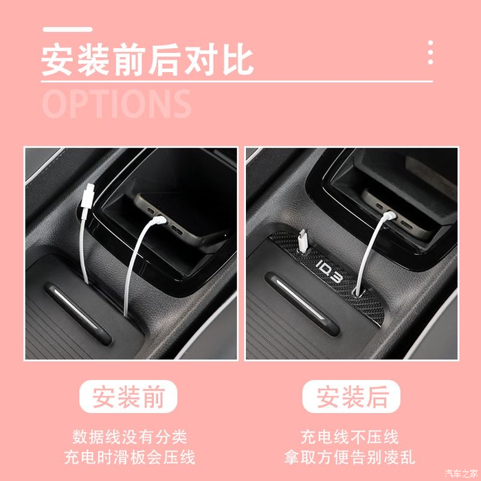 - 中控盒收线器:id3的充电接口支持typec,如果盖上盖子的话线拿不出来,这个收线器就能解决这个问题