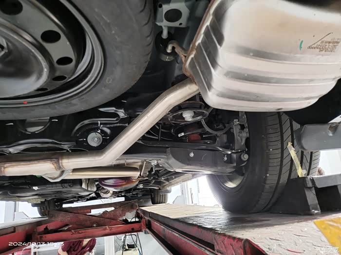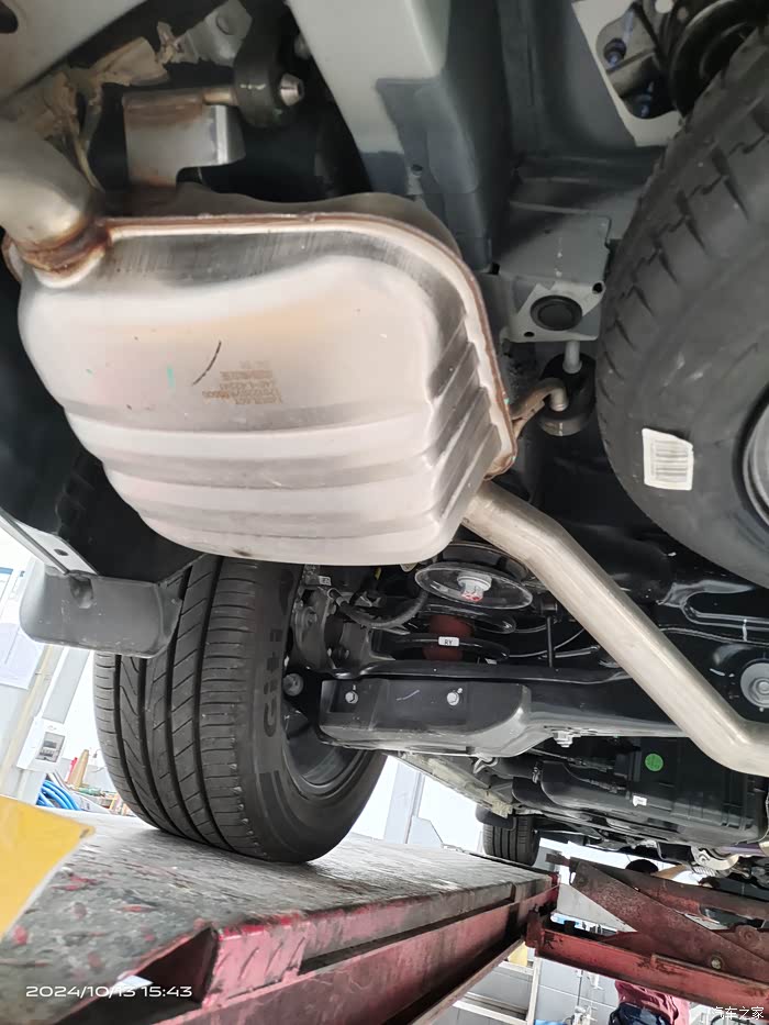 我是个技术小白,这方面我就不多说了,我只说我看到的实际:1.底盘防锈防腐喷涂达到90%的覆盖率,涂层较厚。2.发动机正置布局,有颗粒捕捉器,排气喉离车底有一段距离,大部分热敏感部件外都有隔热瓦片,唯一不足是双出排气中间的备胎并没有隔热瓦片的覆盖,备胎会因此老化得快。3.全车仅前护杠下有防卷入车底护板,其余裸露,但有意思的是后悬挂下摆臂有防护套(没有导风造型,应该非扰流作用)。4.油箱是树脂材质的,没有护板或抗石击涂层。5.前副车架采用全框式结构,非常粗壮(当然后副车架也是),与车身连接的是单层冲压铁块,衬套材质为橡胶。6.前后悬挂部分,采用前麦弗逊、后多连杆结构,前下摆臂为双层冲压工艺,羊角部分皆为铝合金,前摆臂与车架连接件为液压衬套,后摆臂为橡胶衬套。7.前后刹车盘皆为通风盘式,前双活塞、后单活塞卡钳。