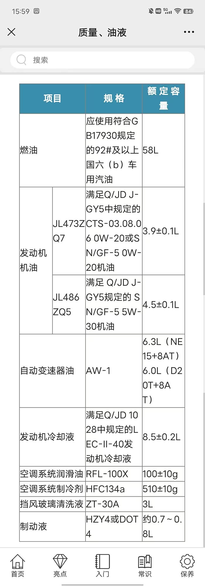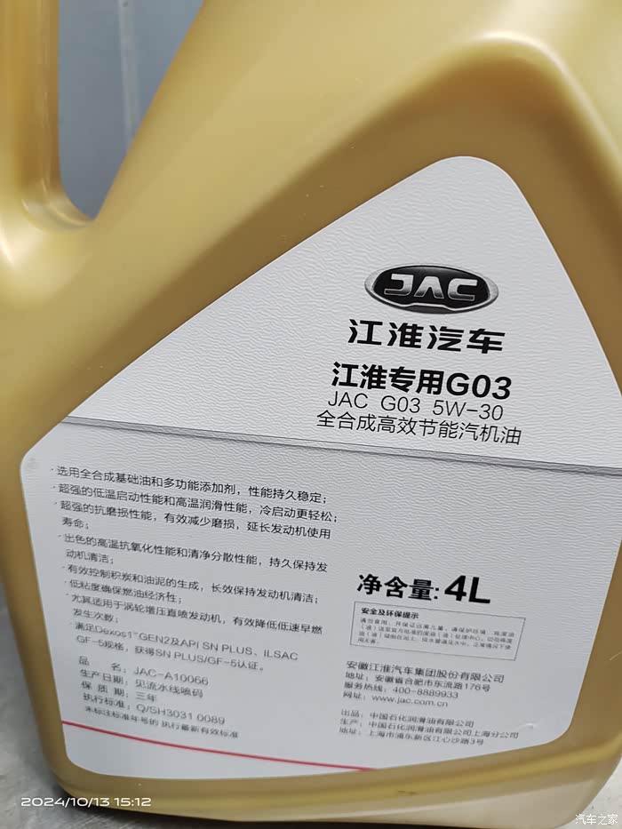 这个过程我并未全程跟踪,只是瞄了几眼,有些地方可能说的不太对。保养的材料由一瓶4L 5W-30 GF-5/SN PLUS规格专用机油(中石化润滑油公司代工)和一个机油滤组成,现场并未见有垫片、螺丝辅料。对照车辆使用手册保养要求,这台东安发动机(代号N20TG)机油规格指定为SN/GF-5(没有多级机油适用范围),机油用量为3.8L±0.5L,我理解是即便用抽液换油方法排空旧油,带机滤的情况下也不超过4.3L油量,虽然看起来比较经济实惠,但对比插混1.5T发动机机油用量还少了点,我是感到惊奇的。另外,值得注意的是,这款发动机也是最新一代长安蓝鲸2.0T发动机,已装车的、销量最多的无疑是当家花旦CS75 PLUS上,对比一下可见各项参数几乎一致,因此,我大胆地搜索了CS75 PLUS的保养信息,有意思的是,长安CS75 PLUS的使用手册关于这款2.0T发动机保养规格显示,虽然都是指定用5W-30 GF-5/SN规格,但机油用量却为4.5L±0.1L。