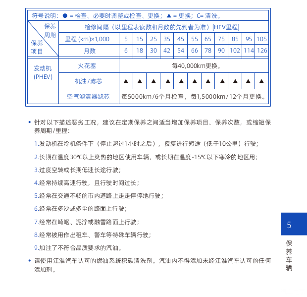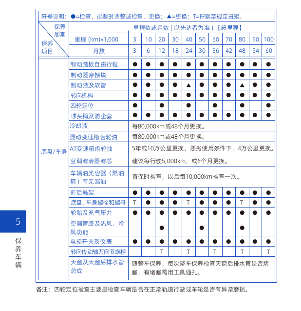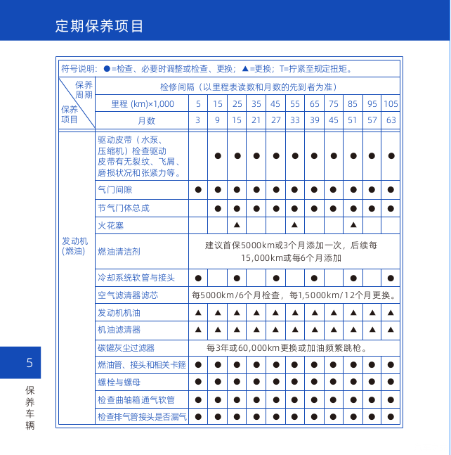 便于车友查询保养基本信息,我把使用手册关于保养项目的截图放这了。