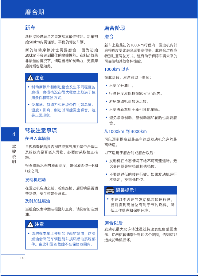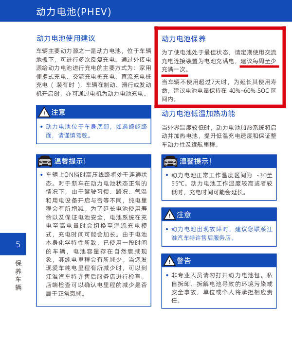 另外,再说两个使用手册提到的,我觉得有意思的点:一是磨合期中行驶最高速度为80KM/H,二是插混的电池保养明确要一周慢充满一次。第一点我是认为在国产车技术崛起的当下,磨合期不超80KM/H并非对机器的保护,而是对自己技术没信心的表现,但我是不相信如今还有这么保守的磨合方法,车是用来开的,没必要这么疼惜,耐用也是强大的其中一个表现,磨合期内我正常使用也未见异常,国产如今造内燃机的技术水平是值得肯定的。第二点是,磷酸铁锂电池特性影响下,插混车型如果不按要求保持电池一致性,肯定会有一定几率发生不好的事(这就自己脑补吧,不说明了),因此,在选择插混车型前请一定务必认真考虑是否能满足一周慢充充满一次的条件。
