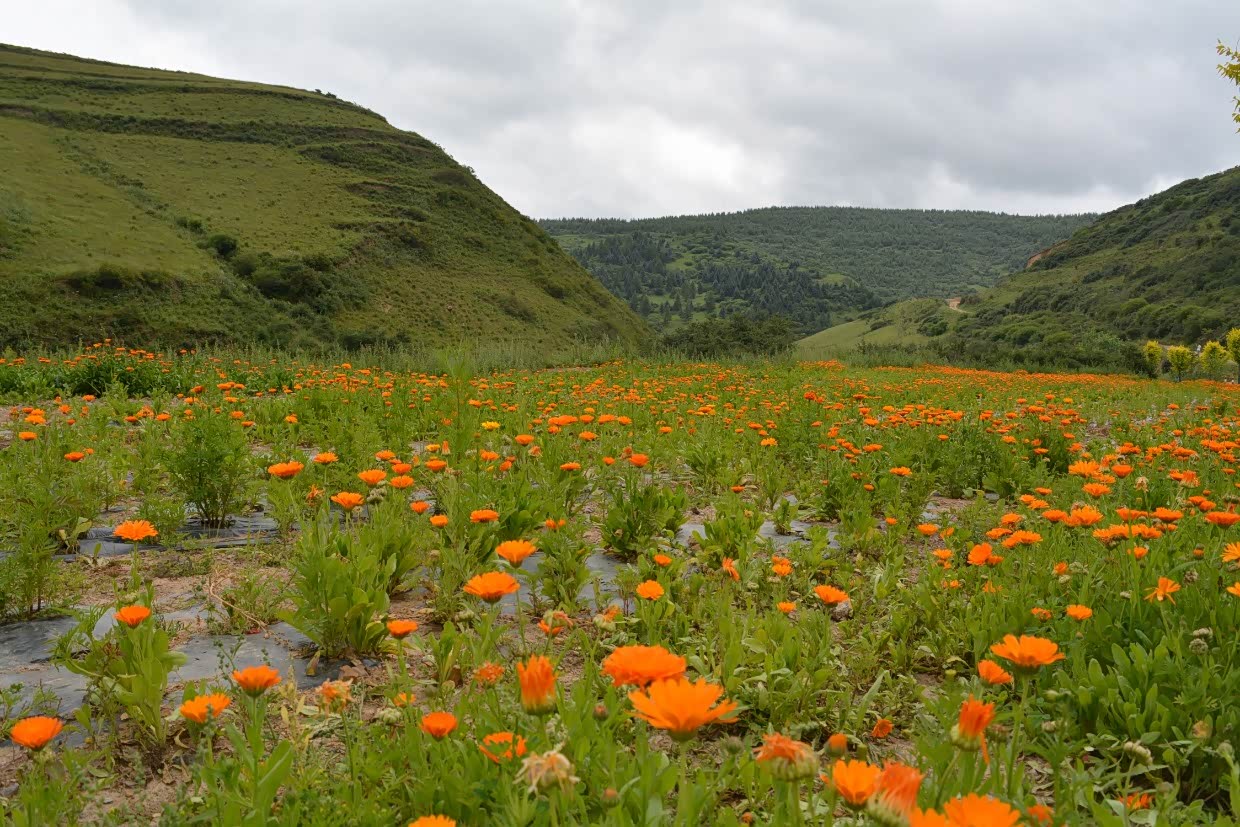赏完山上风光,沿G316返回,进入一个山谷,谷底遍布鲜花。
