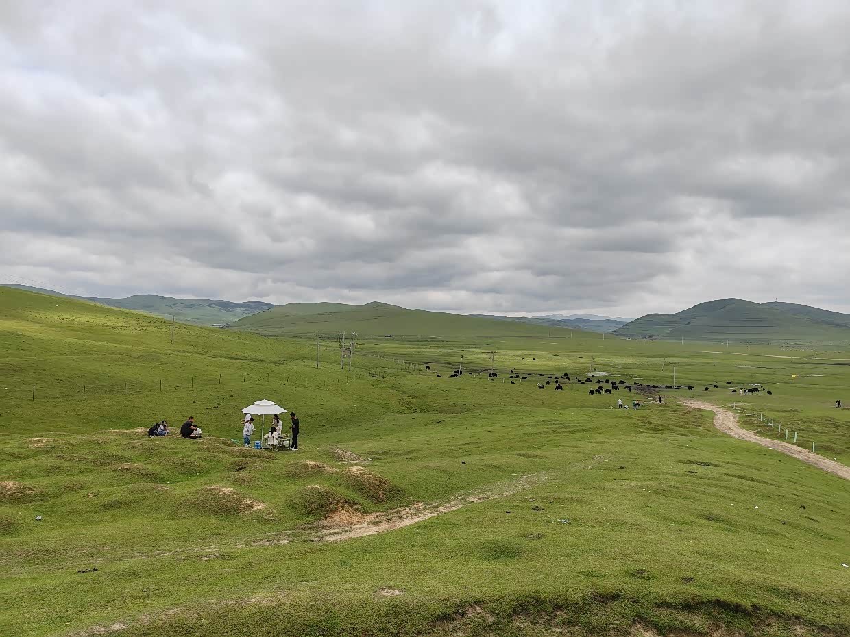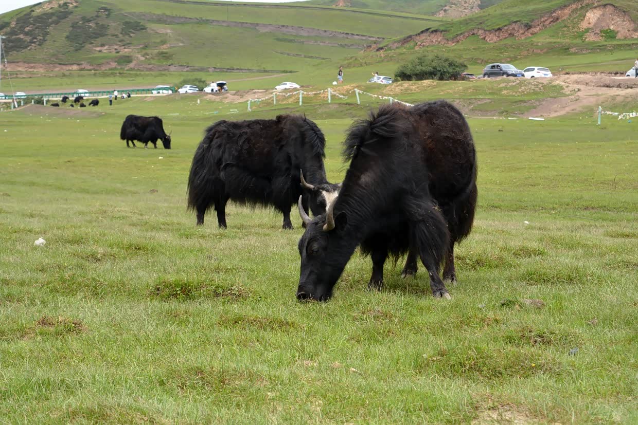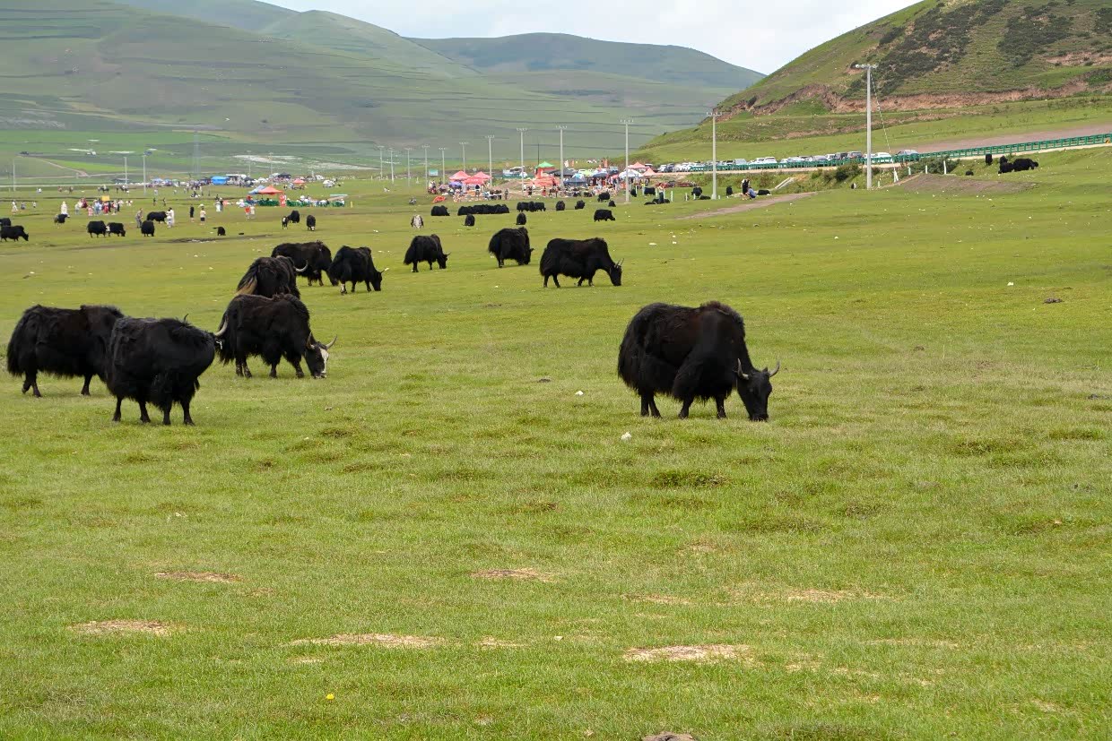 不远处正在劳作的牧民和近处悠闲吃草的牦牛,或许会对此嗤之以鼻了吧!!