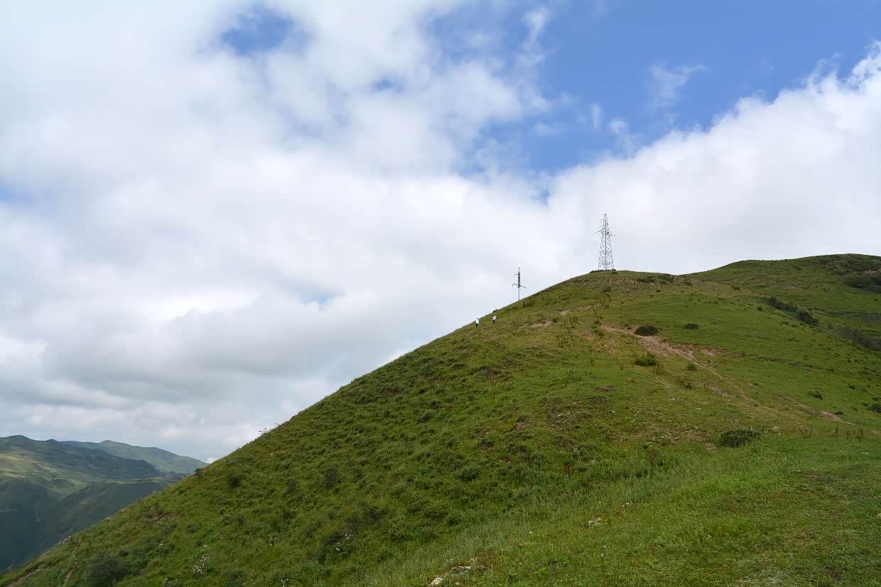 蓝天白云绿草地,山高万丈人为峰。